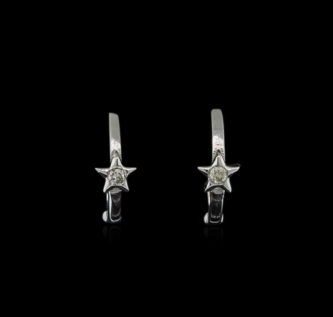 One pair of tiny hoop earrings featuring: 14KT white gold weighing 1.22 grams containing bezel set round diamonds with a total weight of 0.03ct.