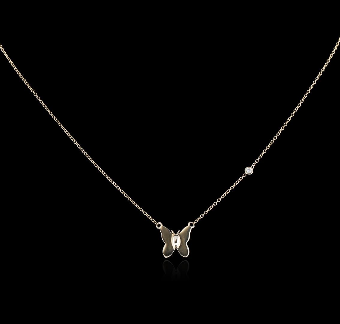 One butterfly necklace featuring: 14KT yellow gold weighing 1.95 grams containing one diamond with a total weight of 0.03ct.