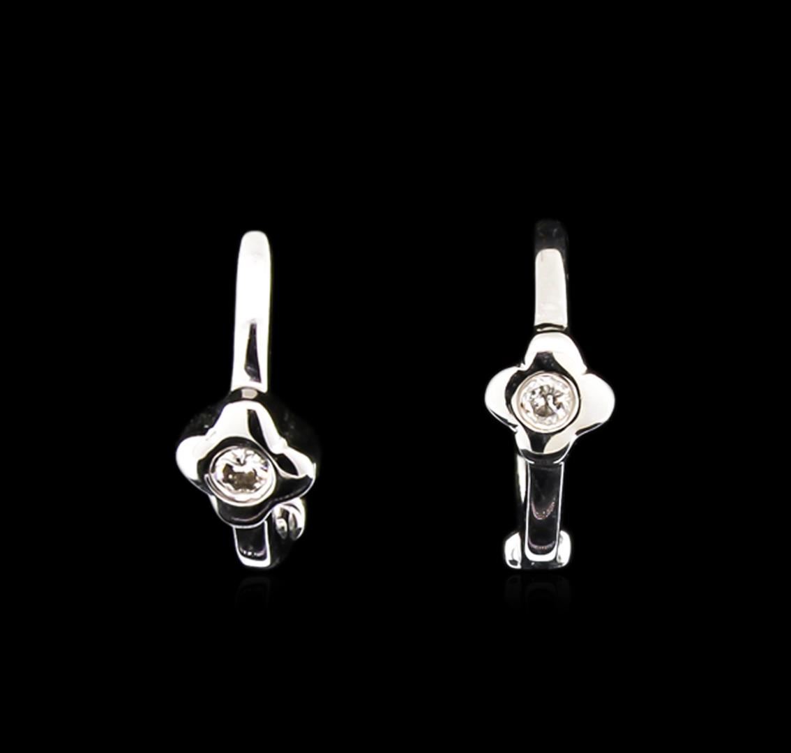 One pair of earrings featuring: 14KT white gold weighing 1.30 grams containing diamonds with a total weight of 0.03ct.