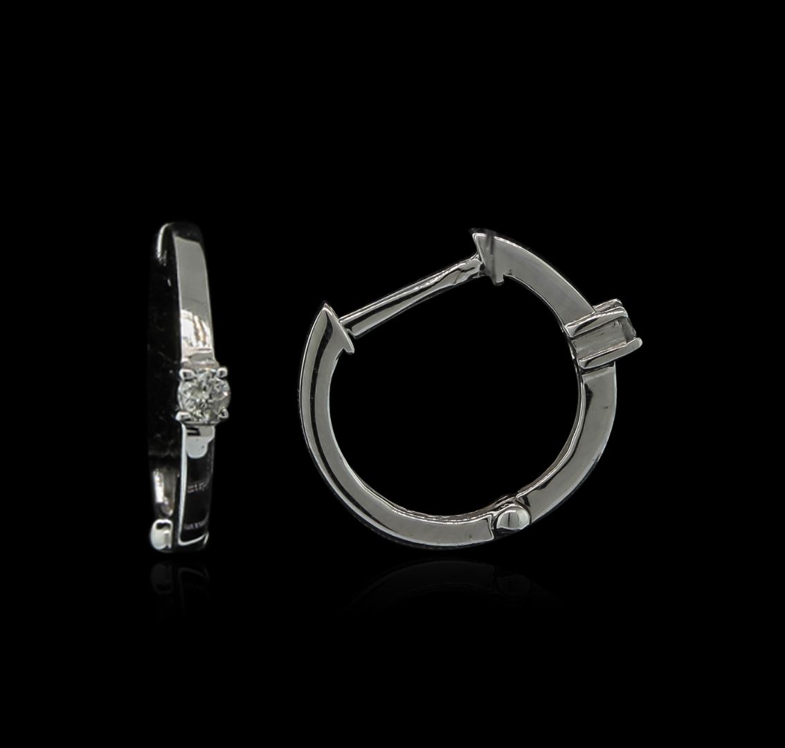 One pair of tiny hoop earrings featuring: 14KT white gold weighing 0.80 grams containing prong set round diamonds with a total weight of 0.04ct.