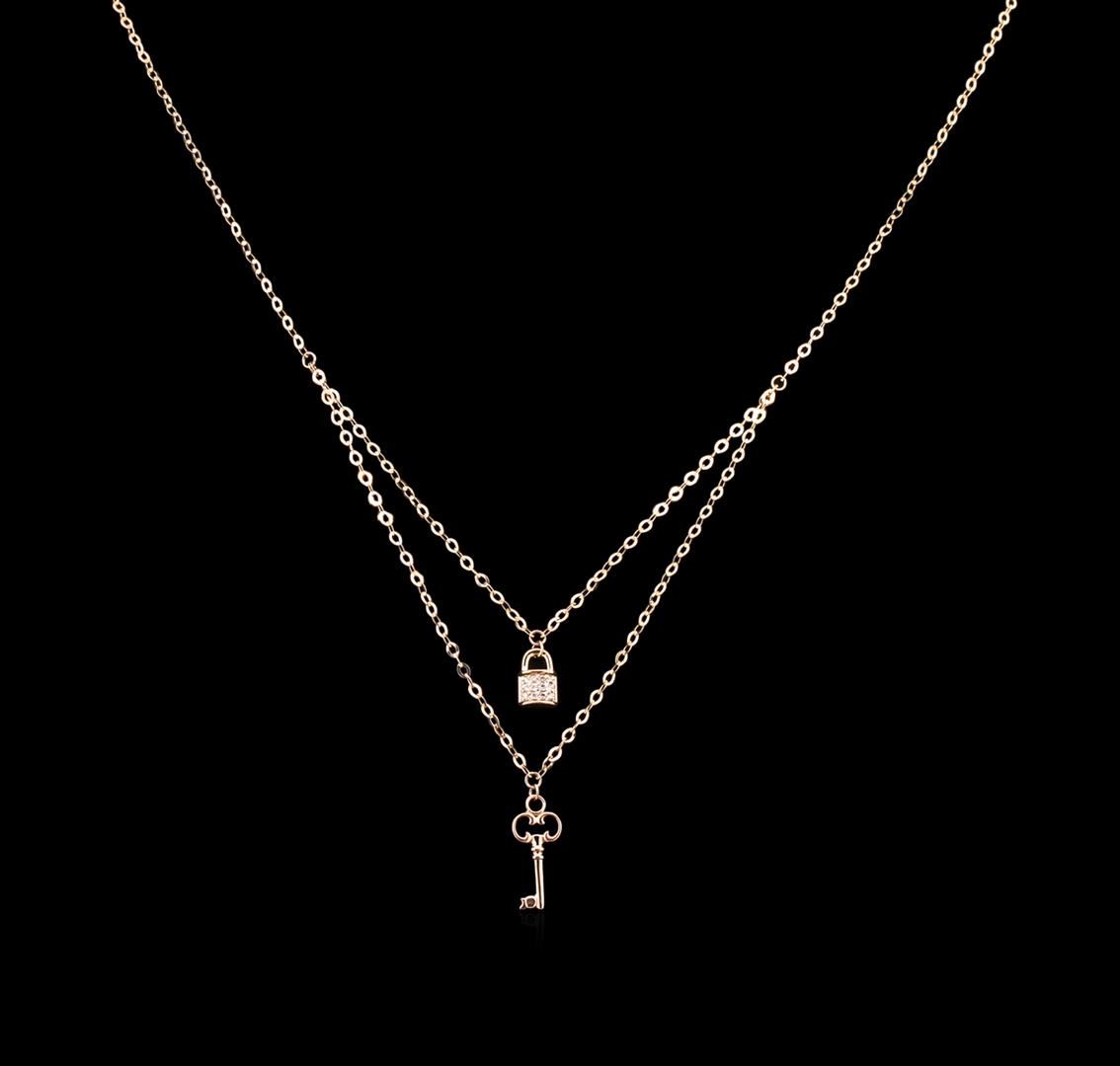 One necklace featuring: 14KT rose gold weighing 2.52 grams containing 12 diamonds with a total weight of 0.06ct.