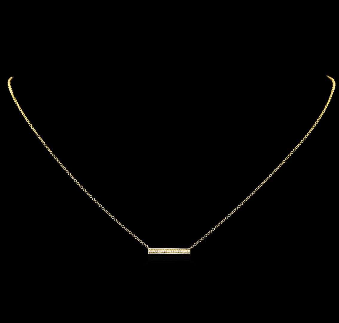One bar necklace featuring: 14KT yellow gold weighing 1.80 grams containing diamonds with a total weight of 0.06ct.
