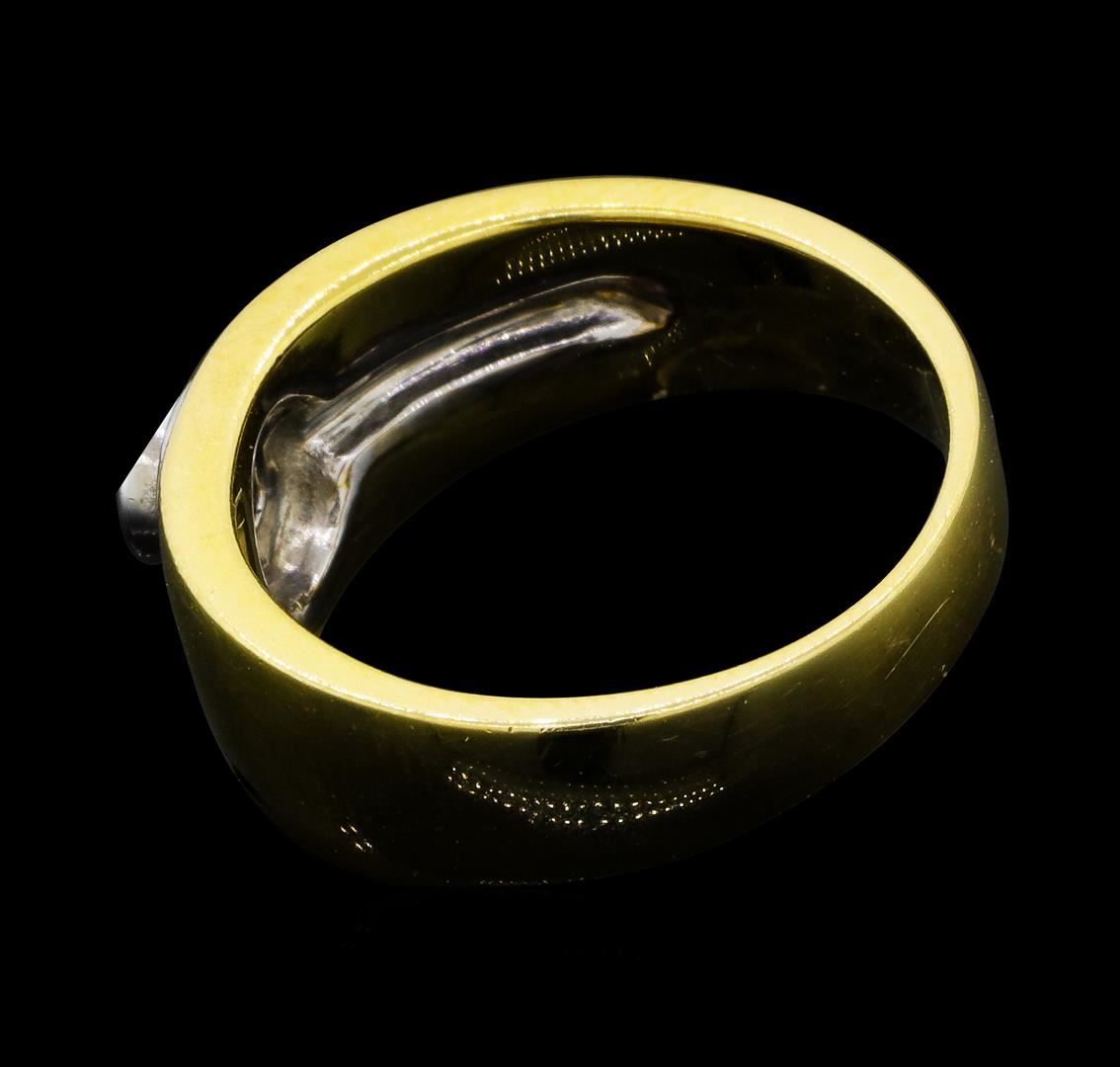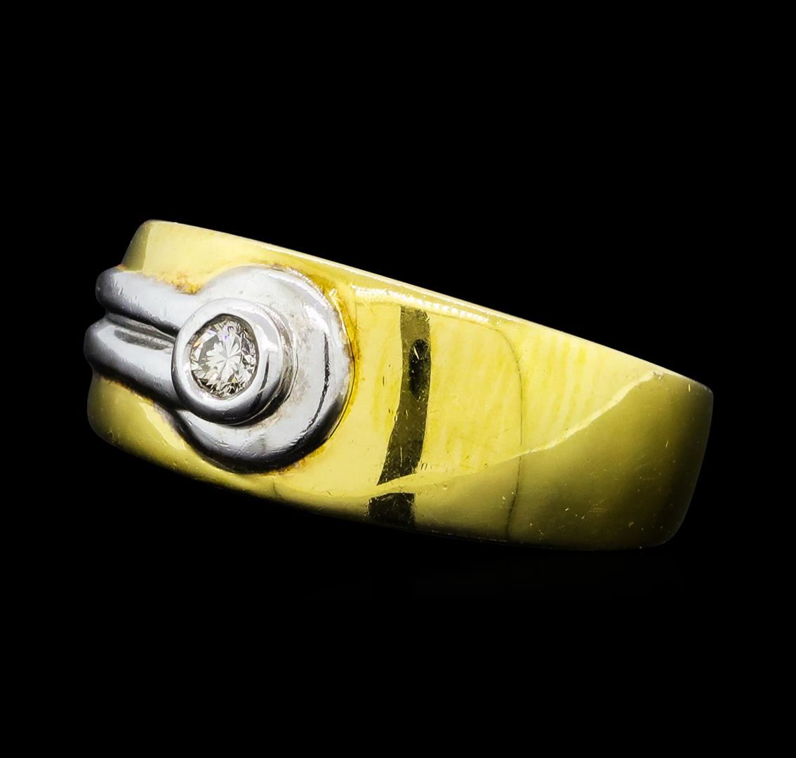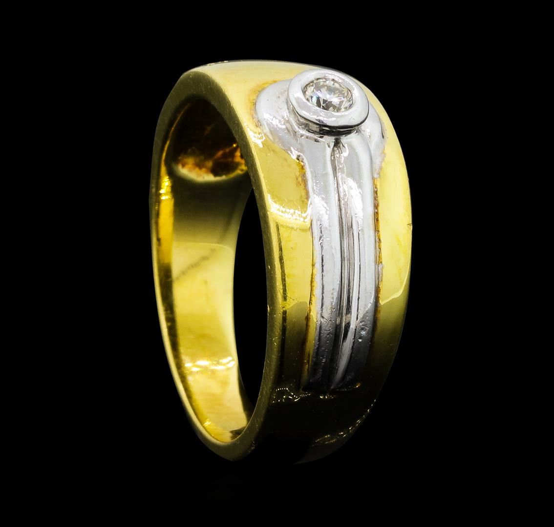 One lady's ring featuring: 18KT white and yellow gold weighing 7.8 grams containing one diamond weighing 0.06ct.