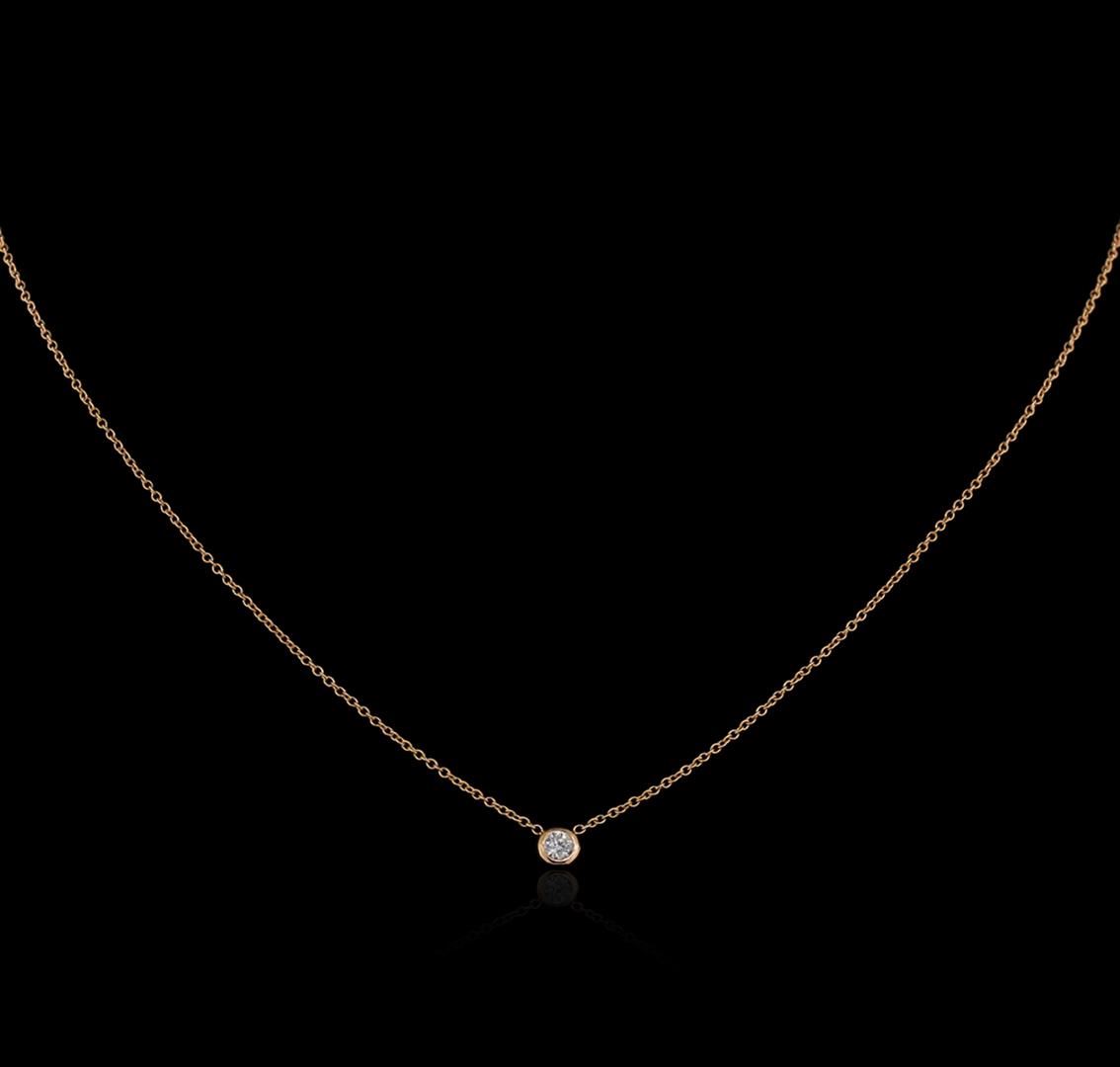 One necklace featuring: 14KT rose gold weighing 1.69 grams containing one diamond with a total weight of 0.09ct.
