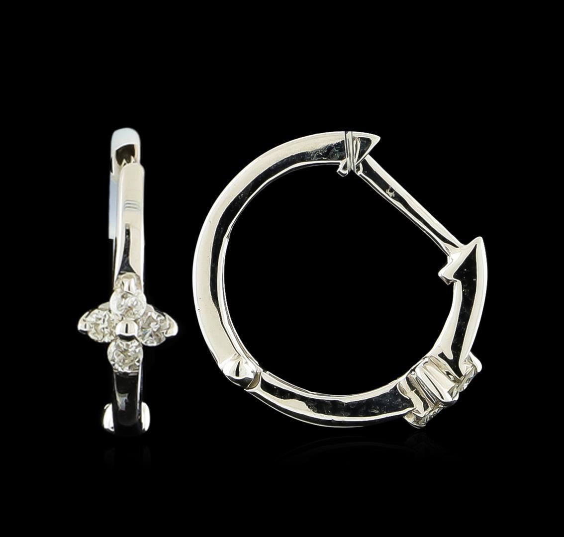 One pair of earrings featuring: 14KT white gold weighing 1.08 grams containing diamonds with a total weight of 0.10ct.