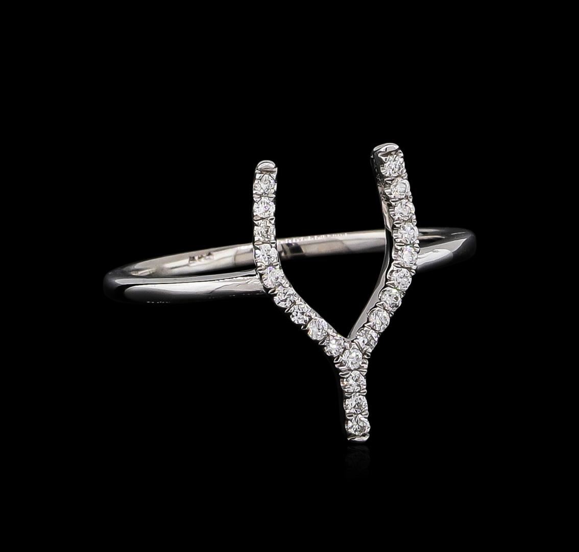 One wish bone shape ring featuring: 14KT white gold weighing 1.52 grams containing diamonds with a total weight of 0.10ct.