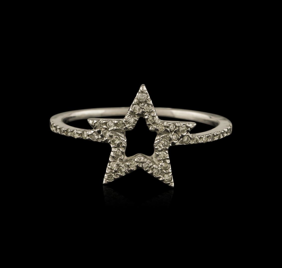 One star ring featuring: 14KT white gold weighing 1.60 grams containing pave set round diamonds with a total weight of 0.11ct.