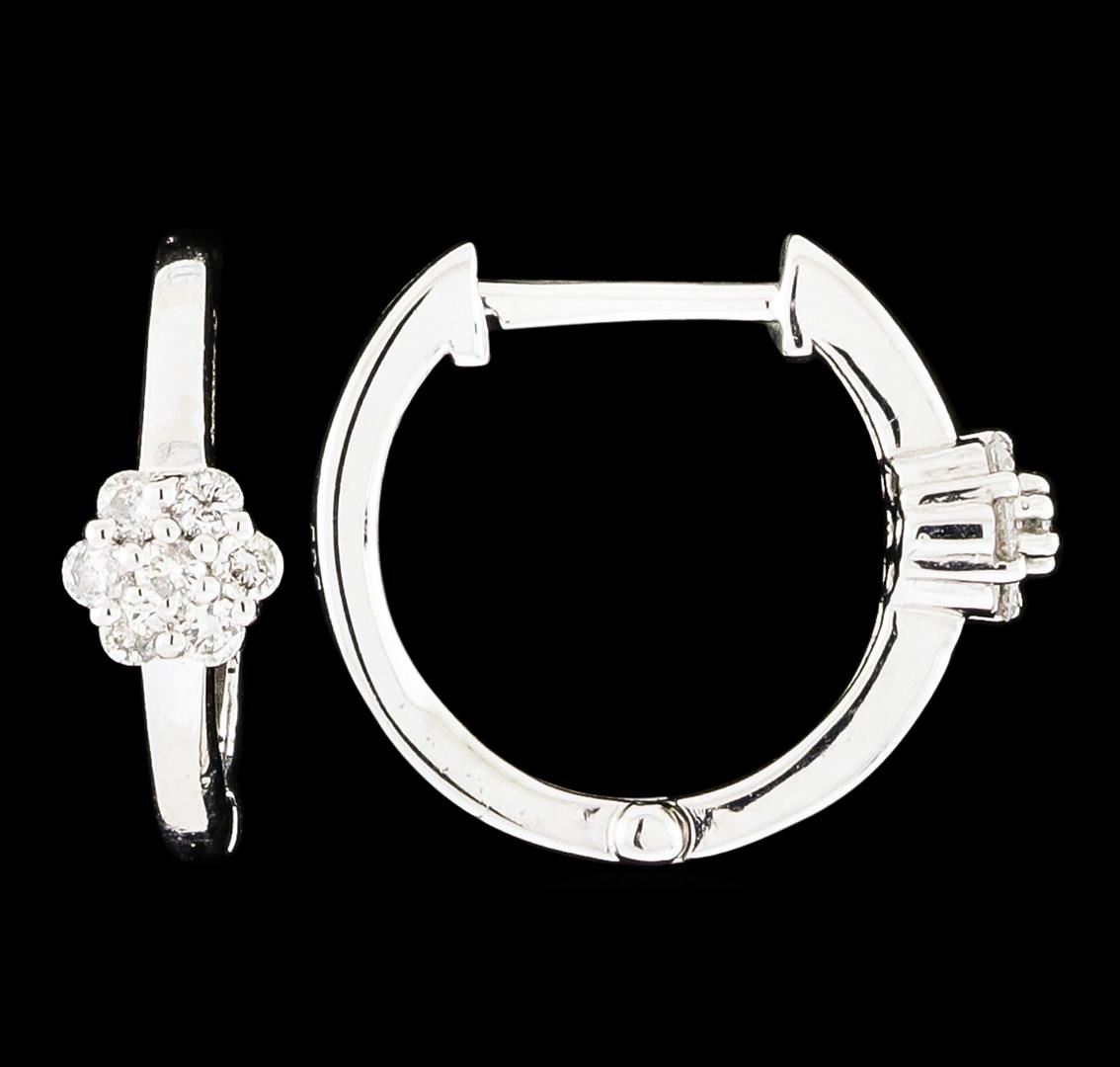 One pair of Diamond Hoop Earrings featuring: 14KT White Gold with a total weight of 1.24 grams and diamonds with a total weight of 0.13ctw.
