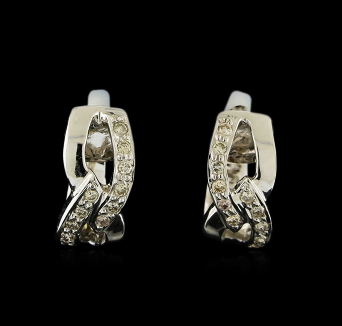 One pair of earrings featuring: 18KT white gold weighing approximately 3.3 grams containing diamonds with a total weight of 0.13ct.