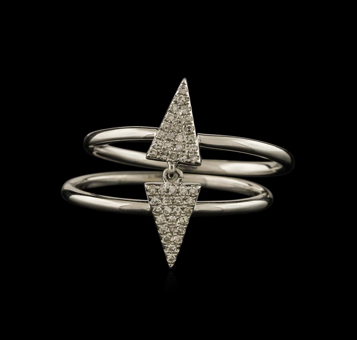 One triangle motion ring featuring: 14KT white gold weighing 2.90 grams containing prong set round diamonds with a total weight of 0.14ct.