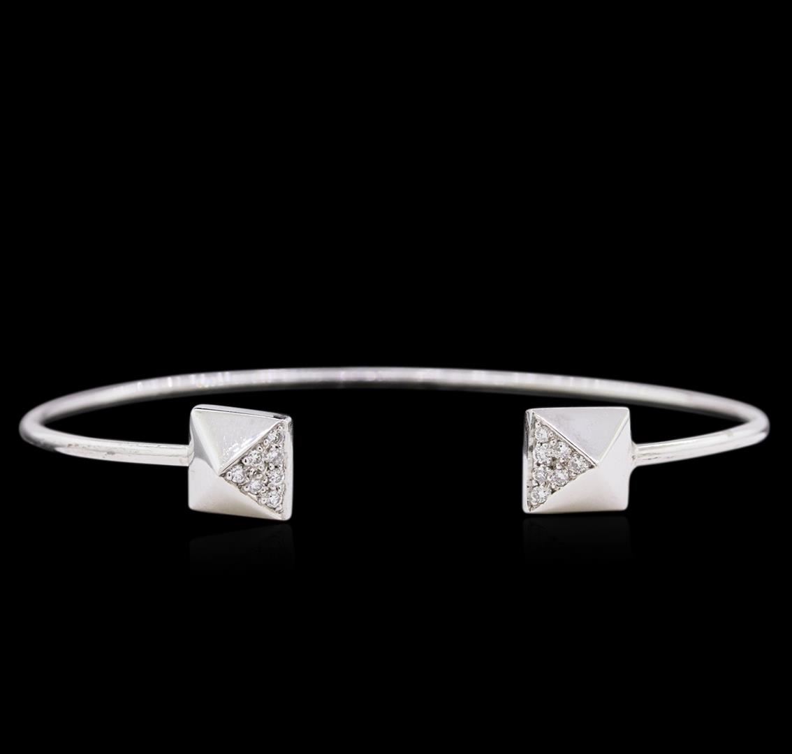 0.14ctw Diamond Bangle Bracelet - 14KT White Gold. 6 g total weight; 14 diamonds; .01 pt each; Adjustable to fit snugly around your wrist.