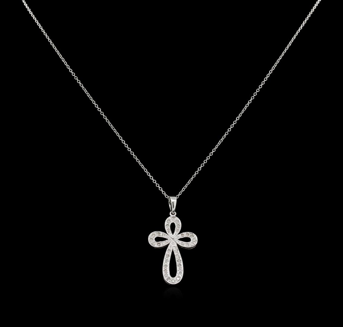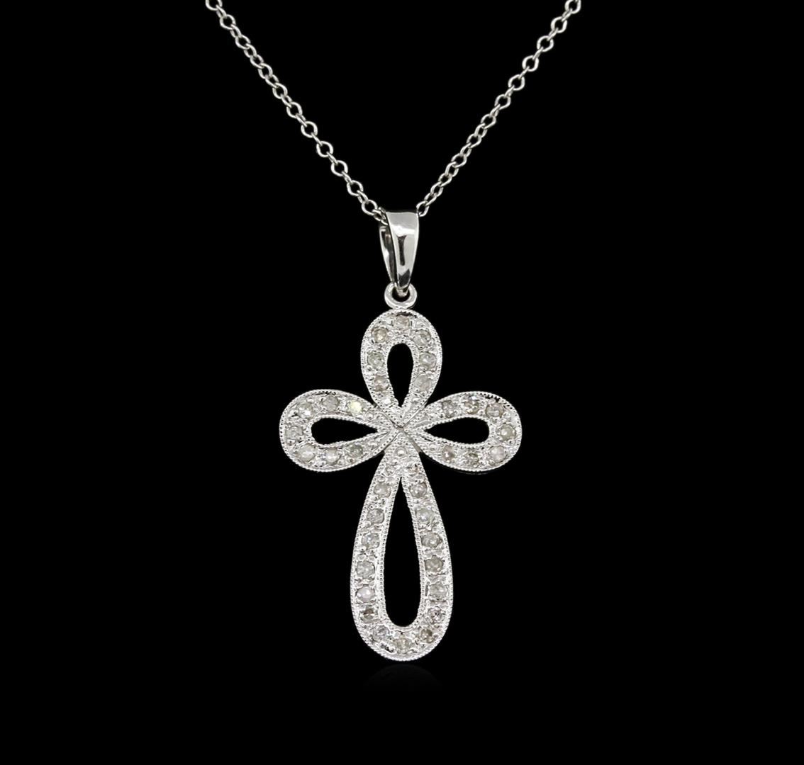 One cross pendant with chain featuring: 14KT white gold weighing 2.00 grams containing diamonds with a total weight of 0.15ct.