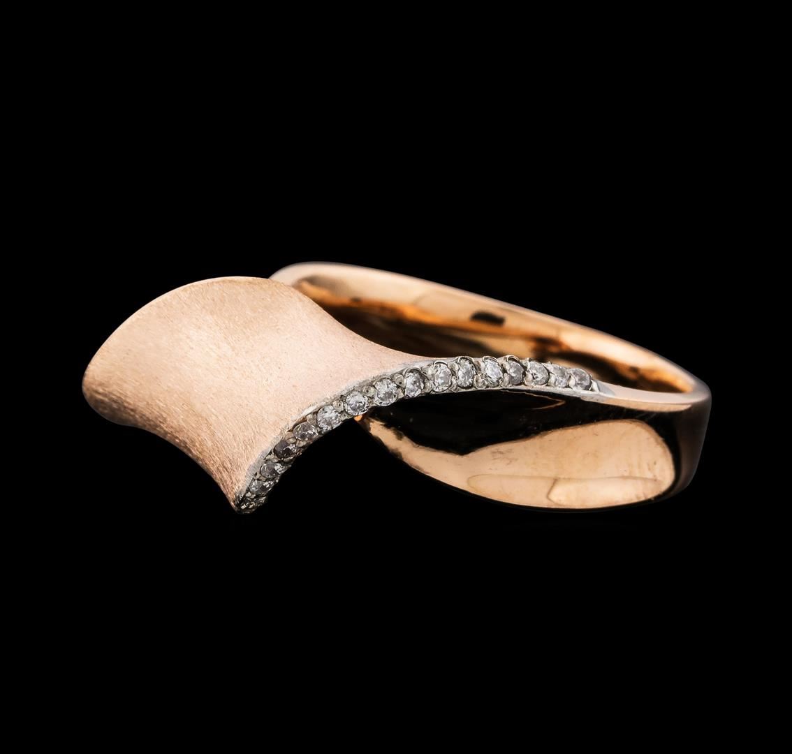 One Diamond Ring featuring: 14KT Rose Gold with a total weight of 6.75 grams and 21 Diamonds with a total weight of 0.15ctw.