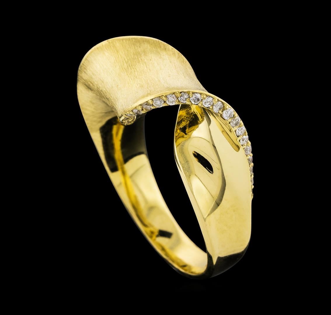 One Diamond Ring featuring: 14KT Yellow Gold with a total weight of 5.96 grams and 21 Diamonds with a total weight of 0.15ctw.