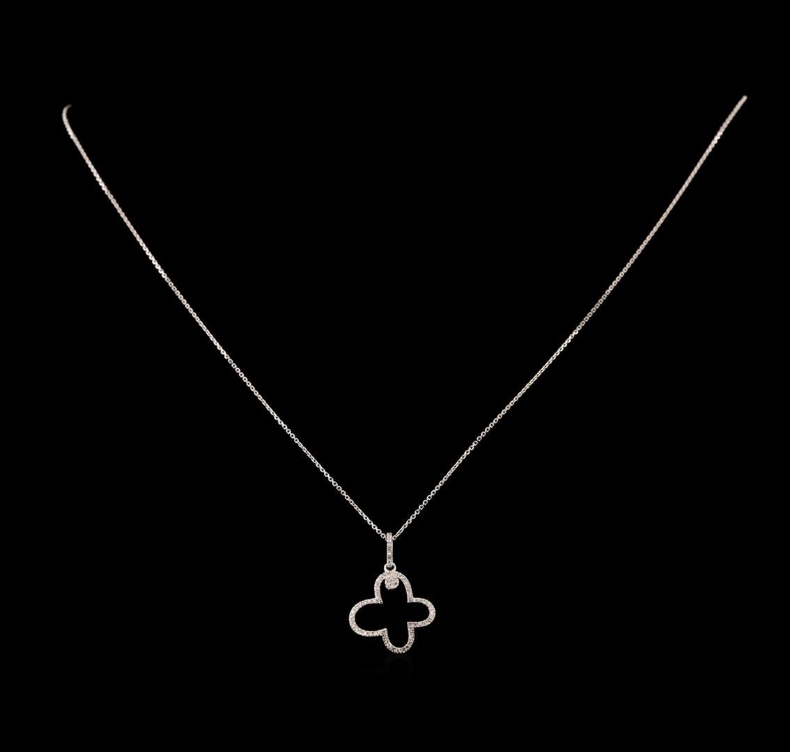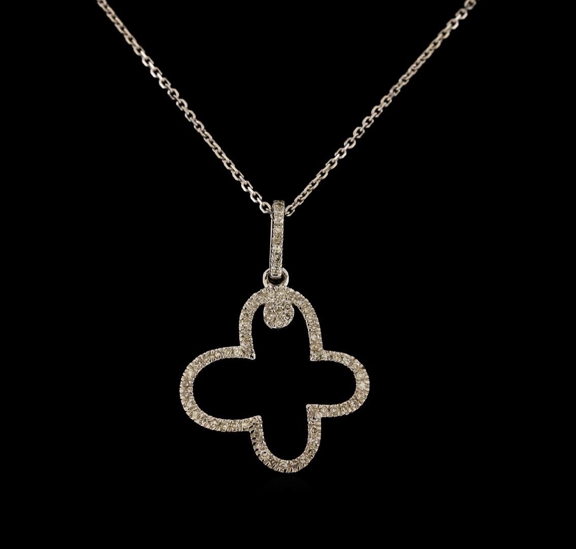 One electronically tested 14KT white gold lady's combination cast & assembled fashion pendant & chain 18.0' long, 1mm diamond cut oval cable link with a spring ring clasp with a bright polish finish. Identified with markings of '14K'. Condition is new, good workmanship. Containing: Seventy-Two prong set round brilliant cut diamonds, measuring 0.90 - 0.85 x 0.53mm (depth est.) approximate total weight of 72 Stones = 0.17ct. Graded in the setting. Clarity SI-2 to I-1. Color: H - I Cut Good. Total Weight of Diamonds 0.17ct.. Total Weight of Pendant & Chain 2.00gm. GAS Appraised at $1,205.00.