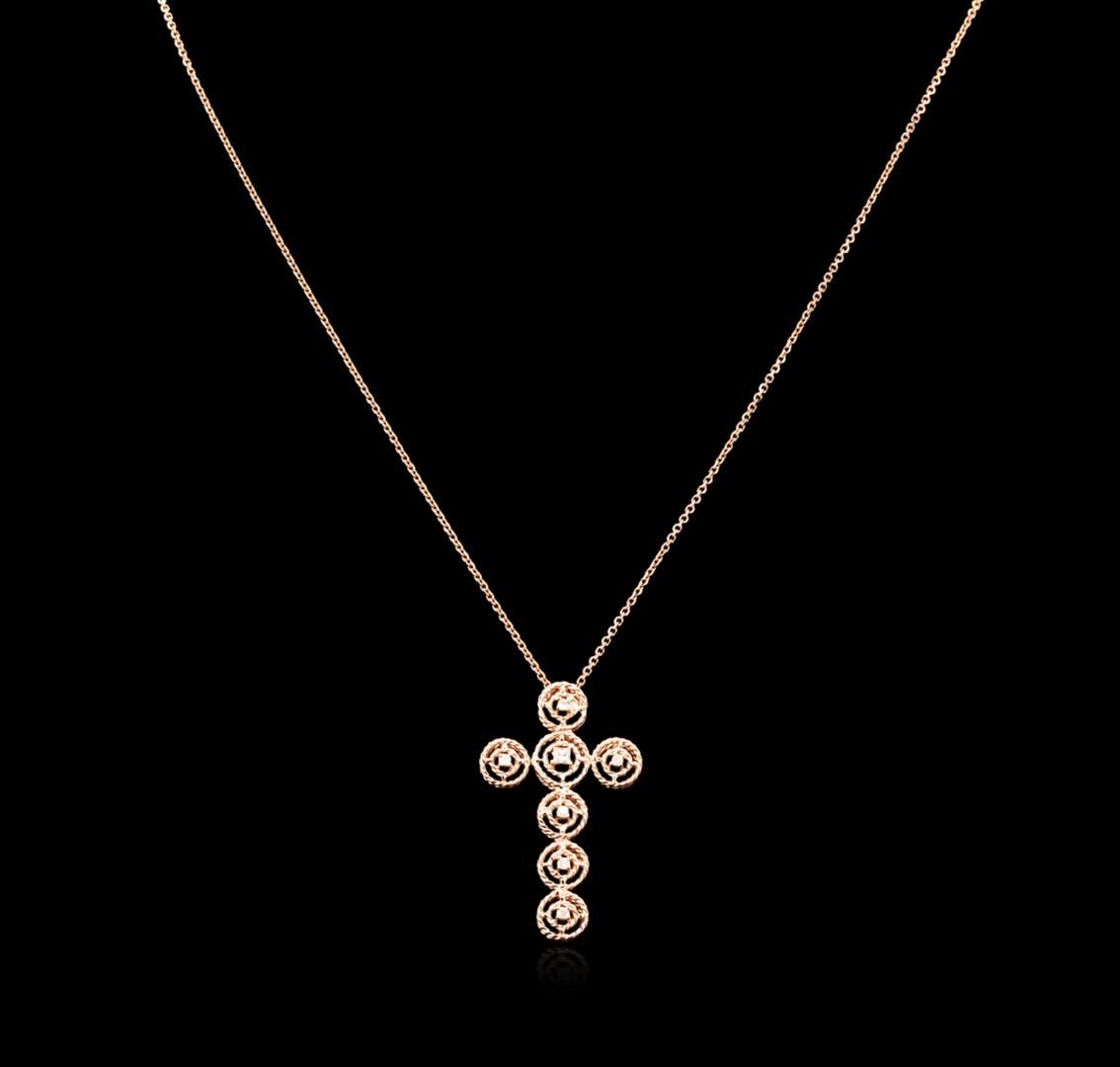 One cross pendant with chain featuring: 14KT rose gold weighing 3.10 grams containing seven diamonds with a total weight of 0.17ct.