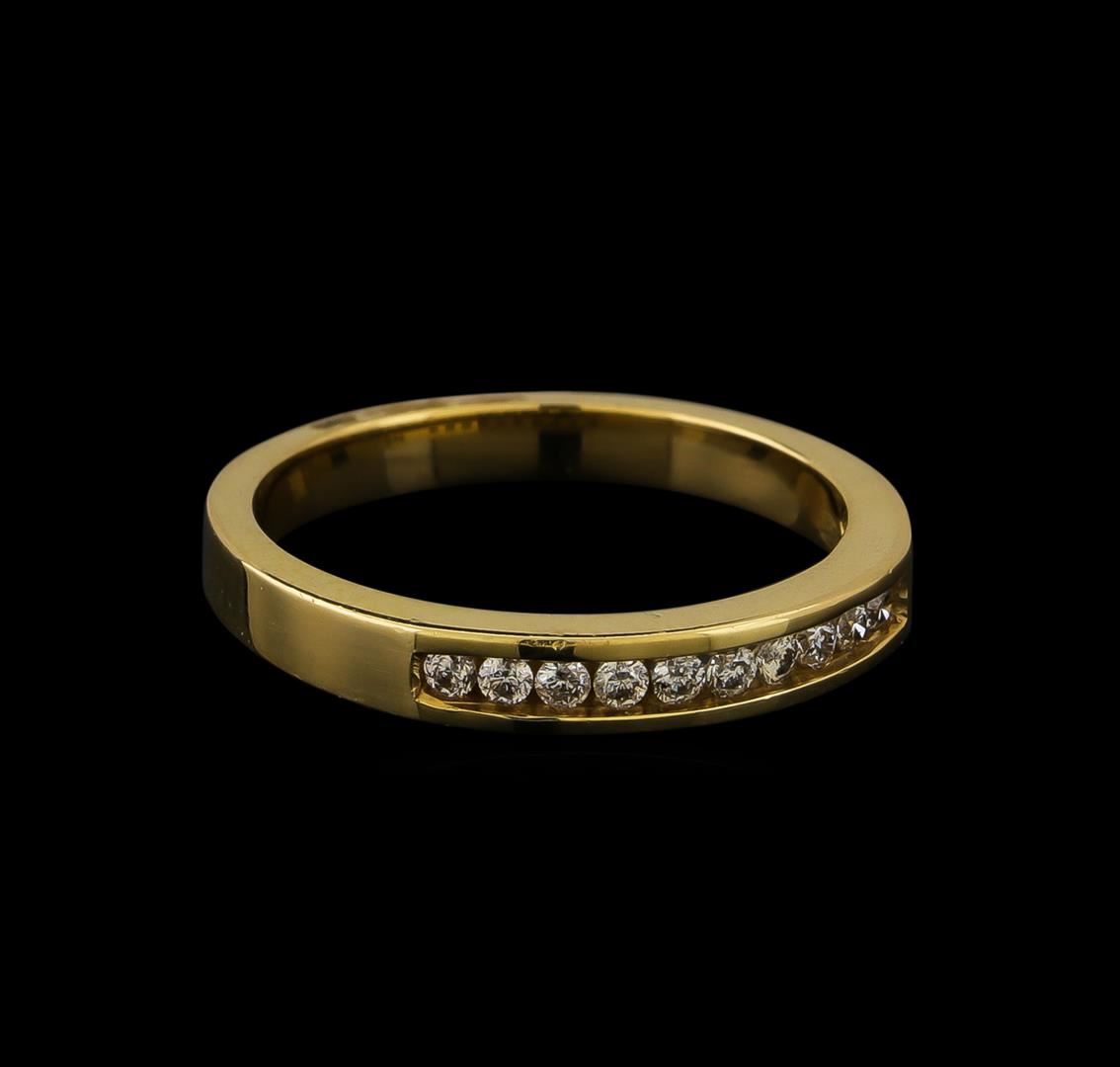 One electronically tested 14KT yellow gold lady's cast fashion band with a bright polish finish. The featured lady's ring has a shank measuring 2.50 millimeters in width. Identified with markings of "14K". Condition is new, good workmanship. Containing: Ten channel set round brilliant cut diamonds, measuring 1.70 - 1.60 x 1.02mm (depth est.) approximate total weight of 10 Stones = 0.18ct. Graded in the setting. Clarity: SI-1 to SI-2. Color: I - Good. Total Weight of Diamonds 0.18ct. Total Weight of Band 3.00gm. GAS Appraised at $955.00.
