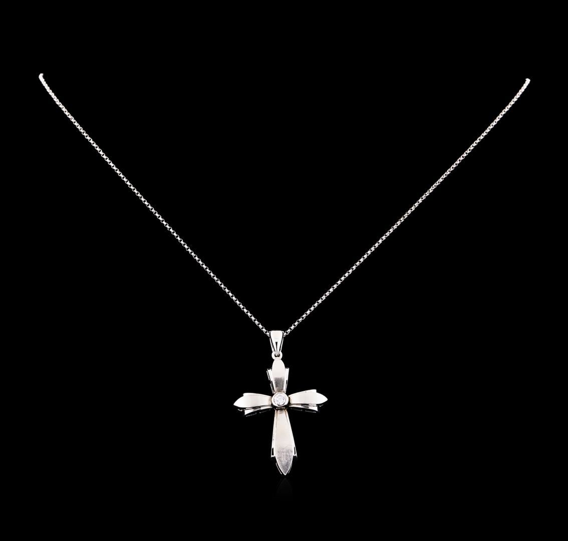One cross pendant with chain featuring: 14KT white gold weighing 8.01 grams containing one diamond with a total weight of 0.18ct.