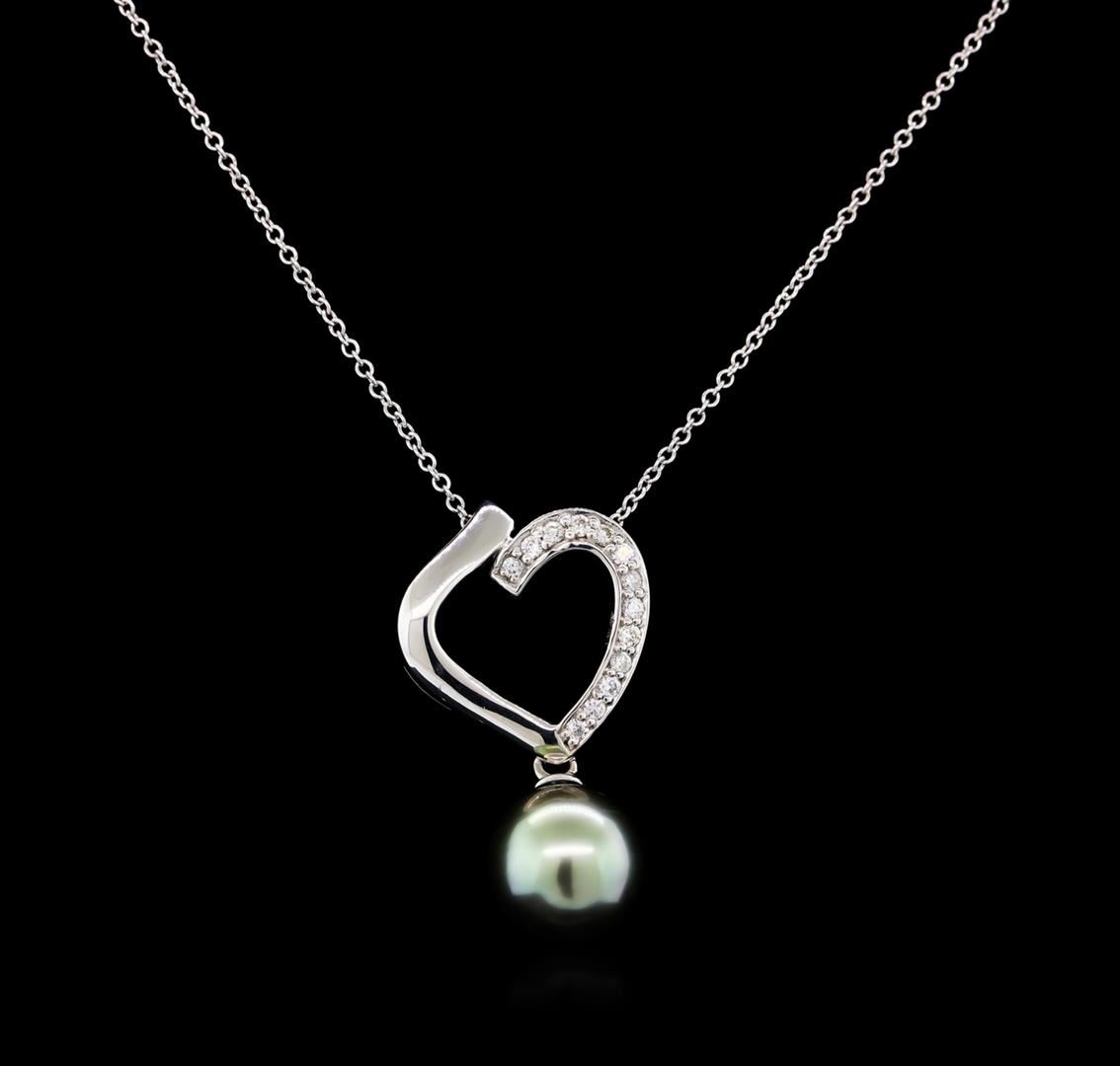 One pendant featuring: 14KT white gold weighing 2.82 grams containing one pearl and side diamonds with a total weight of 0.12ct.
