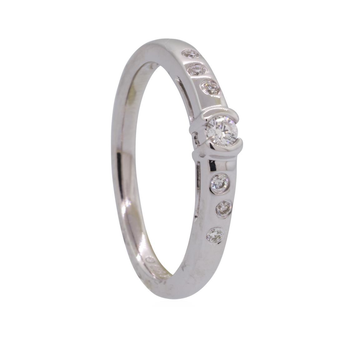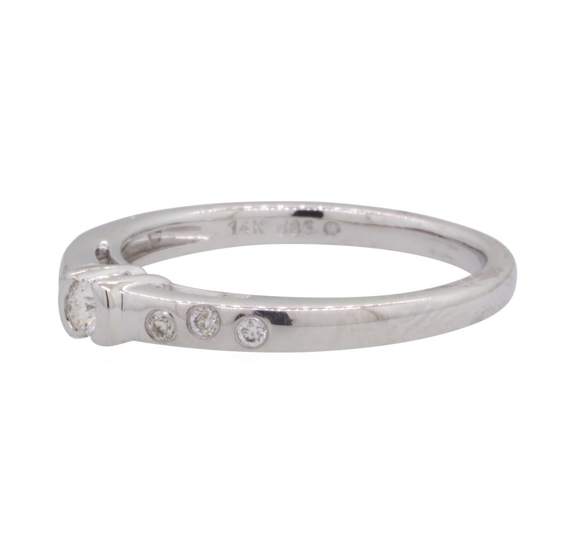 One lady's ring featuring: 14KT white gold weighing 2.8 grams containing diamonds weighing 0.20ctw.