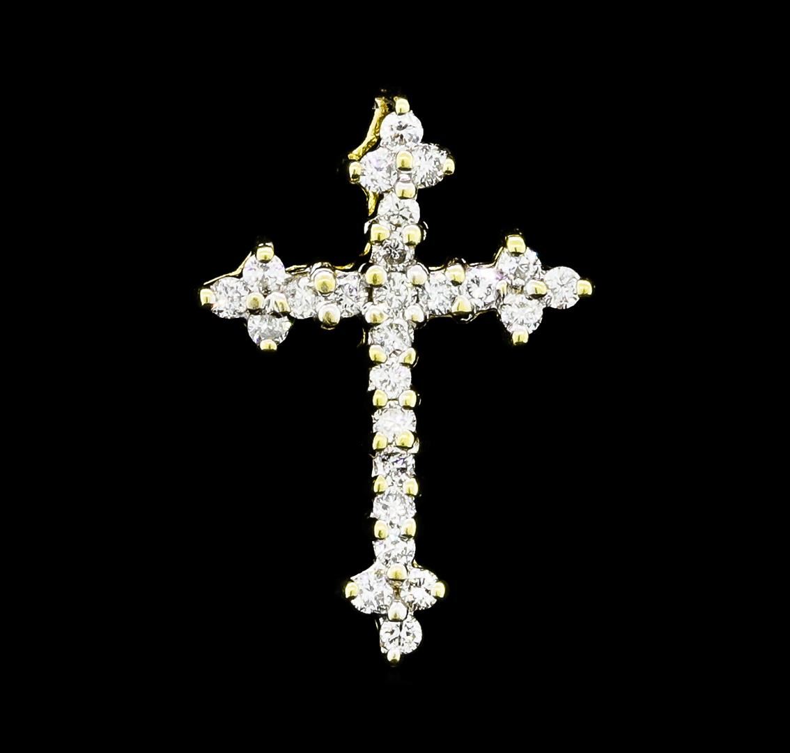 One lady's cross pendant featuring: 14KT yellow gold weighing 1.2 grams containing diamonds weighing 0.20ctw.