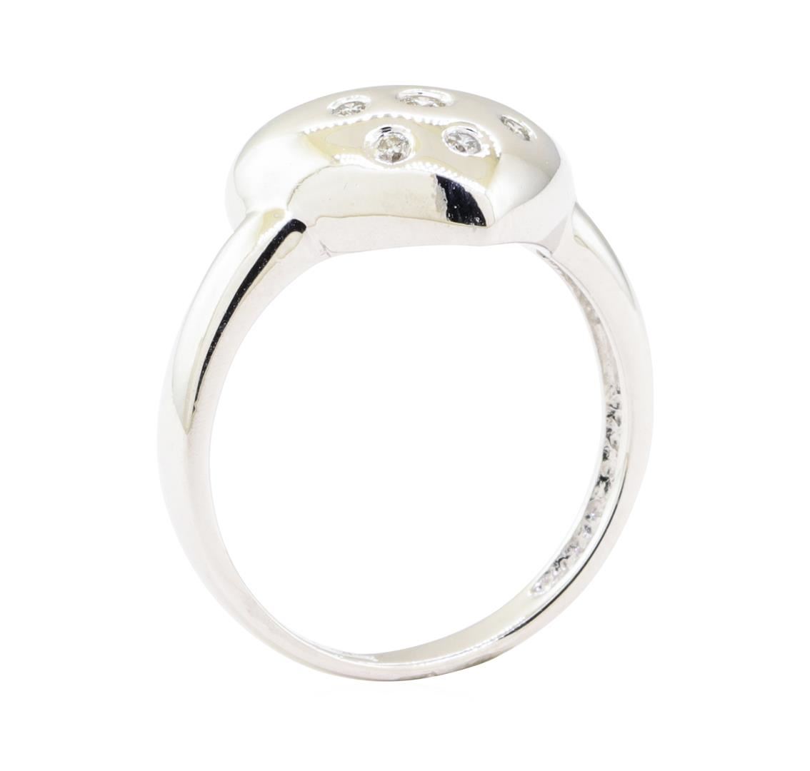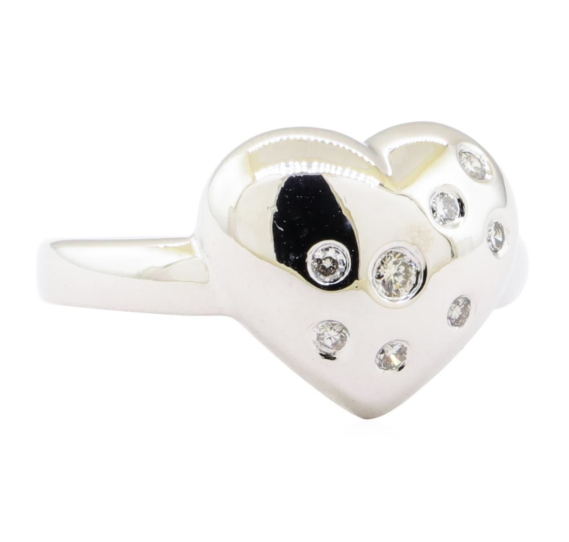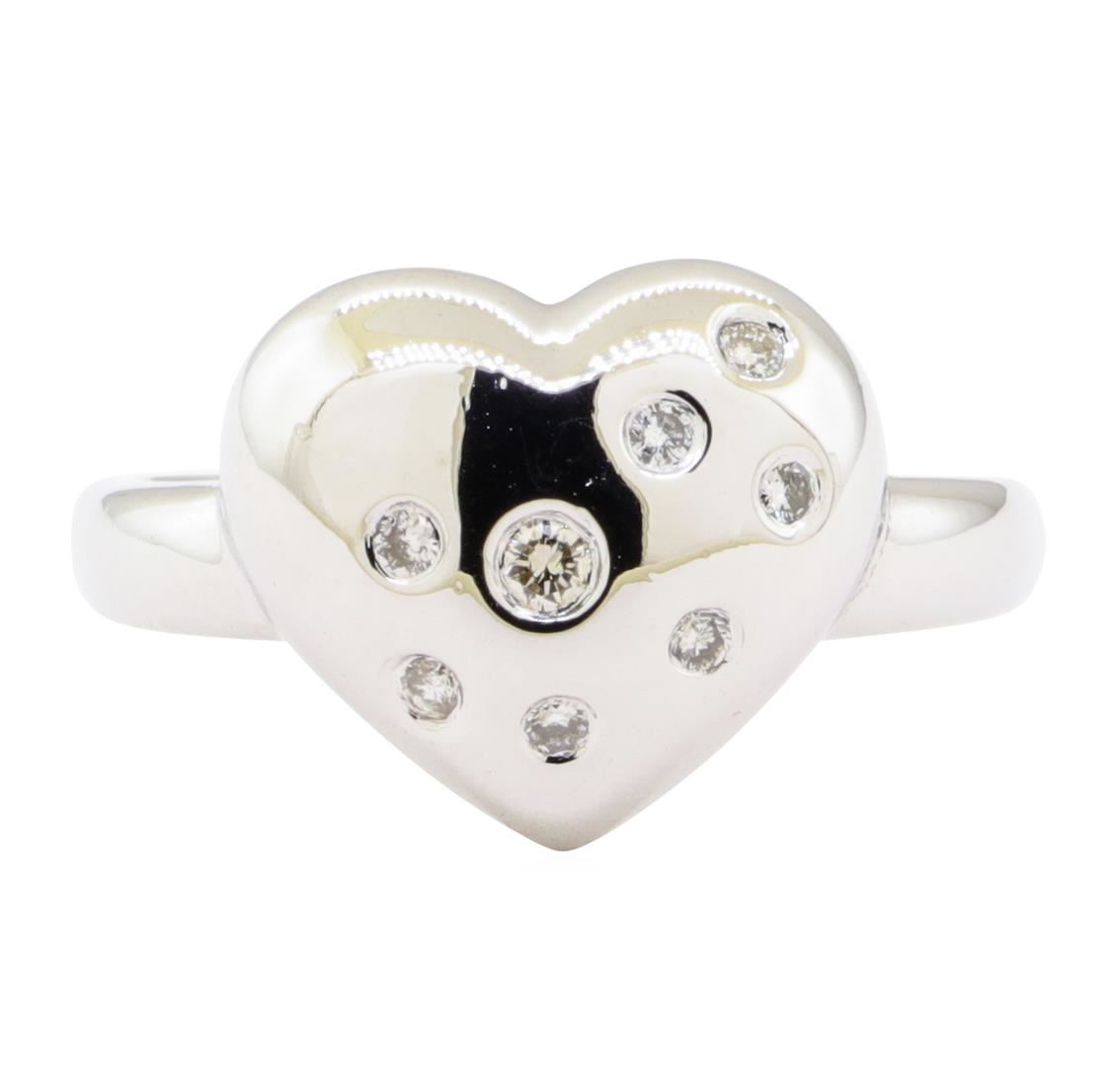 One ring with a heart shaped motif featuring: 14KT white gold weighing 4.2 grams containing diamonds weighing 0.20 ctw.