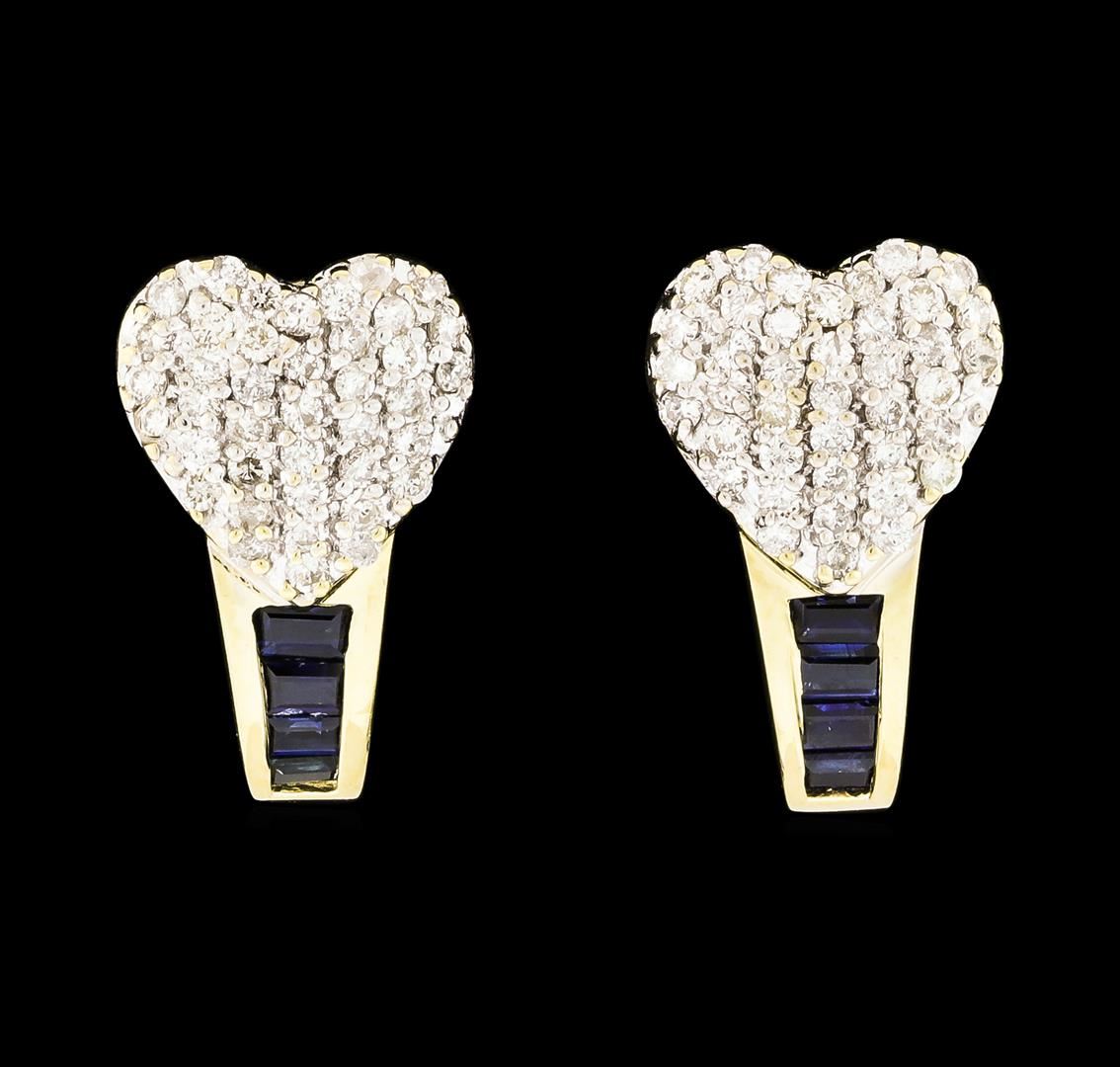 One pair of earrings: 14KT yellow gold weighing 4.20 grams containing sapphires weighing 0.20ctw and diamonds weighing 0.20ctw