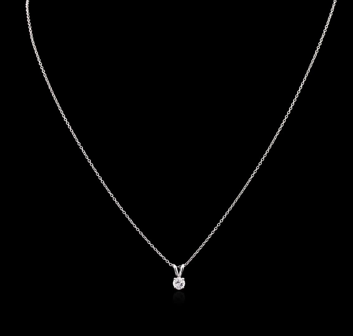 One solitaire pendant with chain featuring: 14KT white gold weighing 1.37 grams containing one diamond with a total weight of 0.22ct.