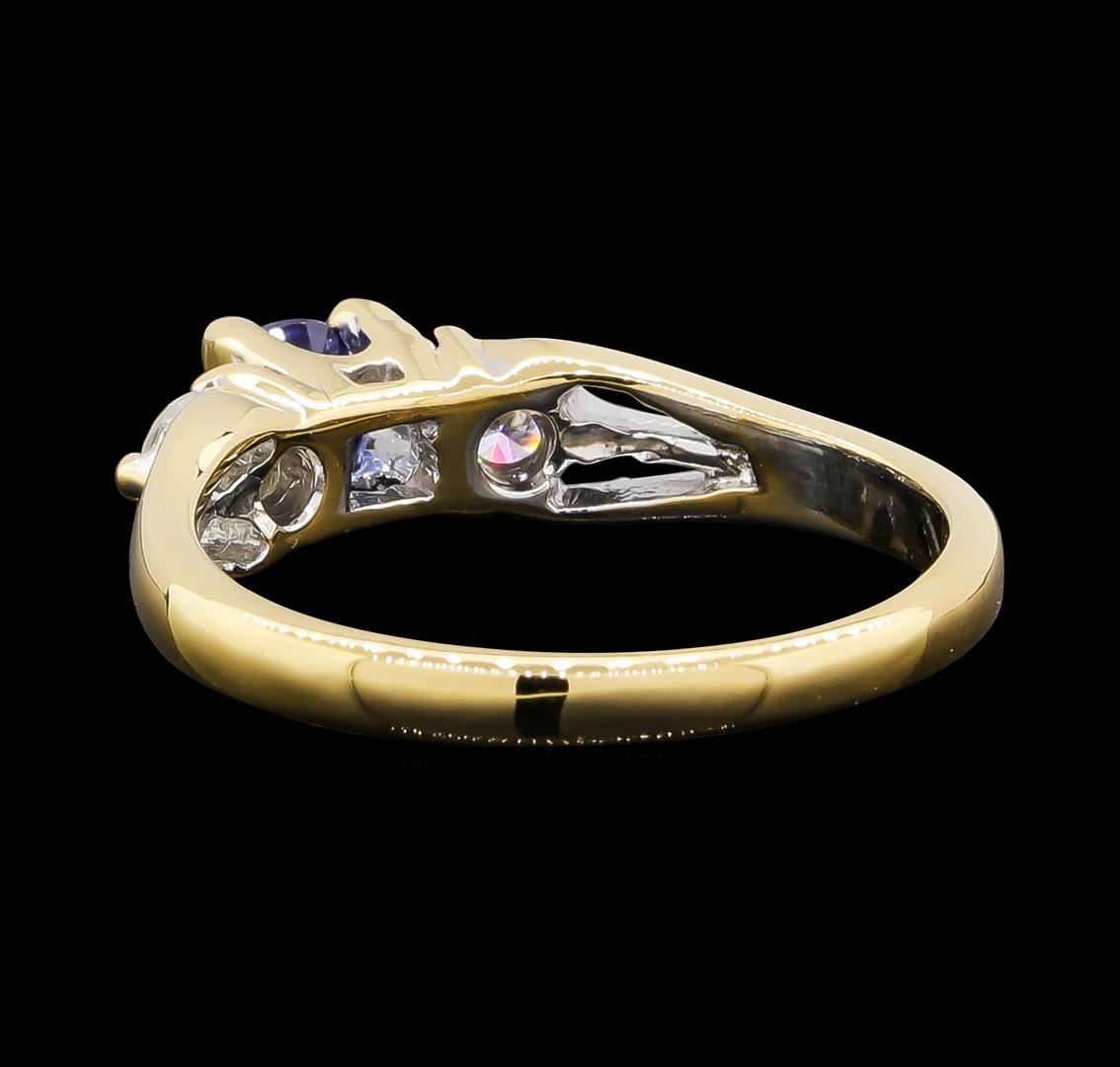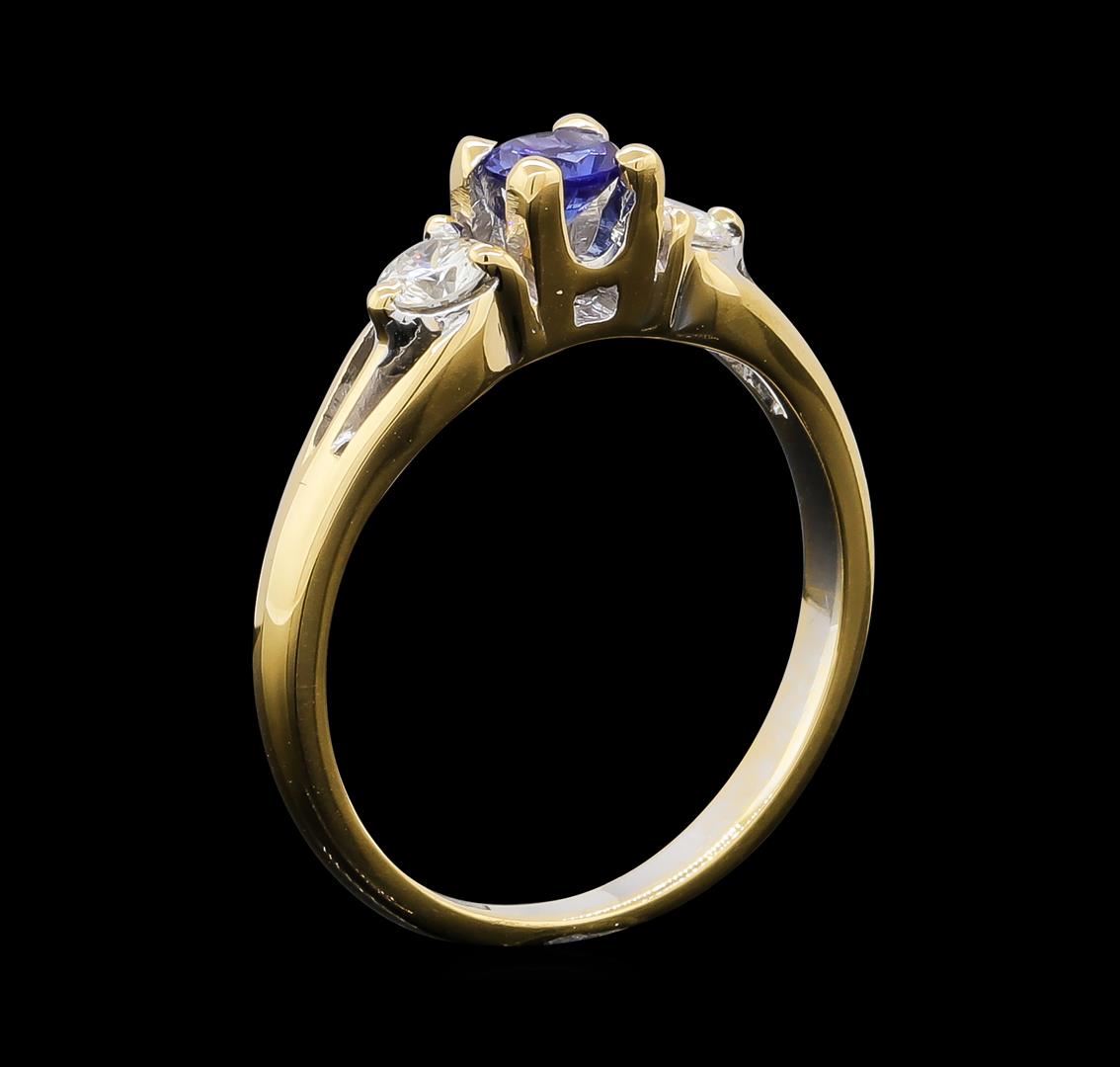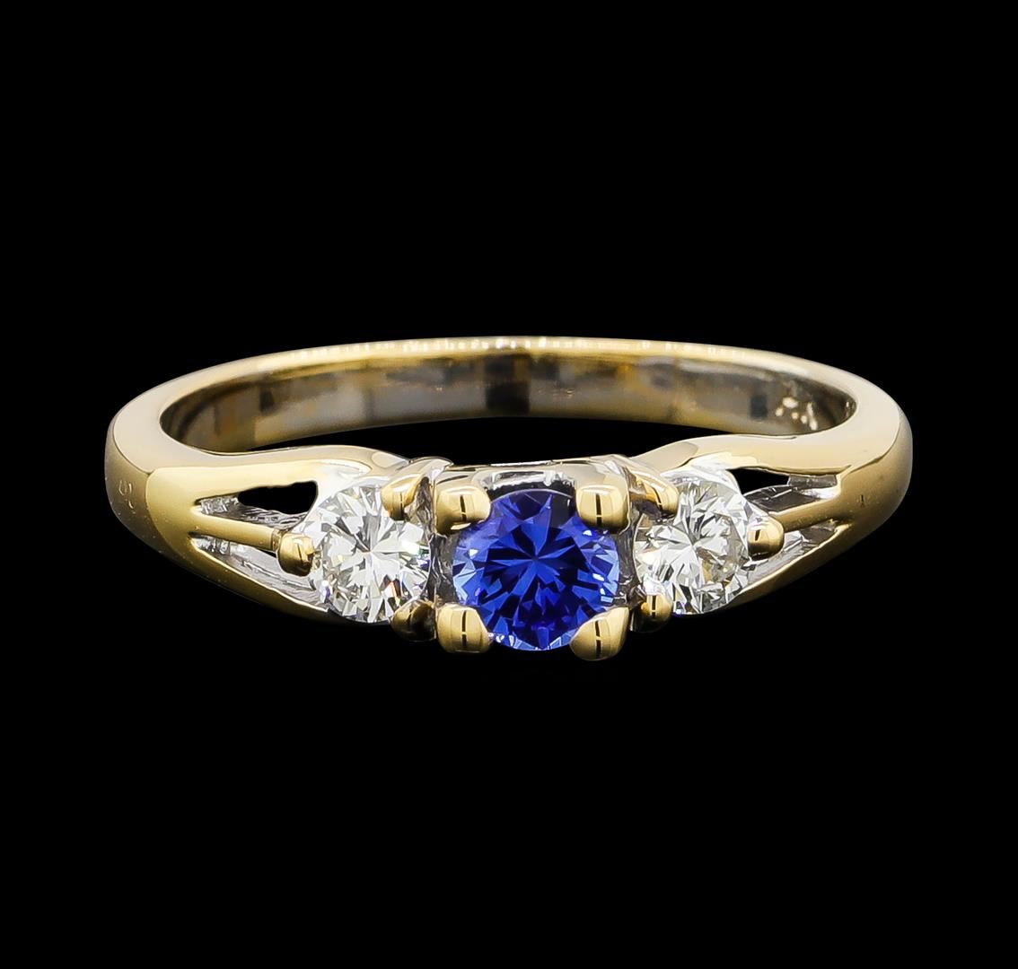 One ring: 14KT yellow gold weighing 3.00 grams containing one sapphire center weighing 0.23ct and diamonds weighing 0.40ctw.