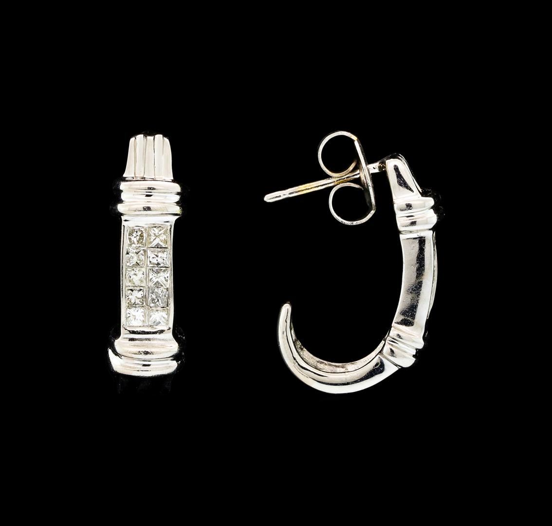 One pair of earrings featuring: 14KT white gold weighing 3.28 grams containing diamonds weighing 0.25ctw.