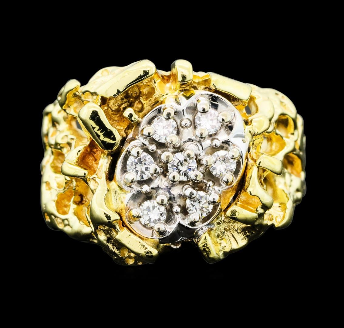 One nature ring featuring: 14KT yellow gold weighing 11.40 grams containing diamonds weighing 0.25ctw.