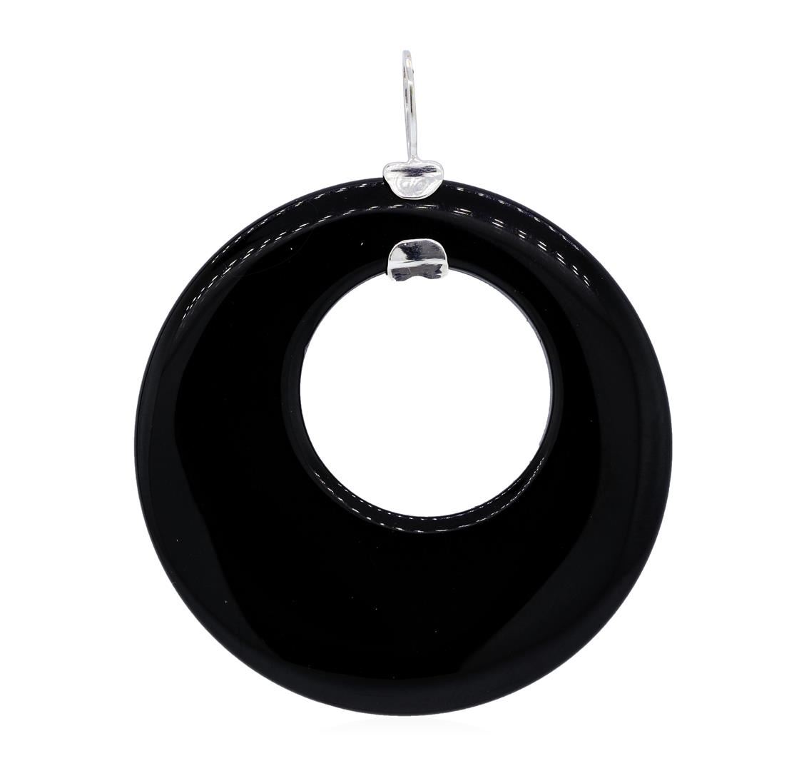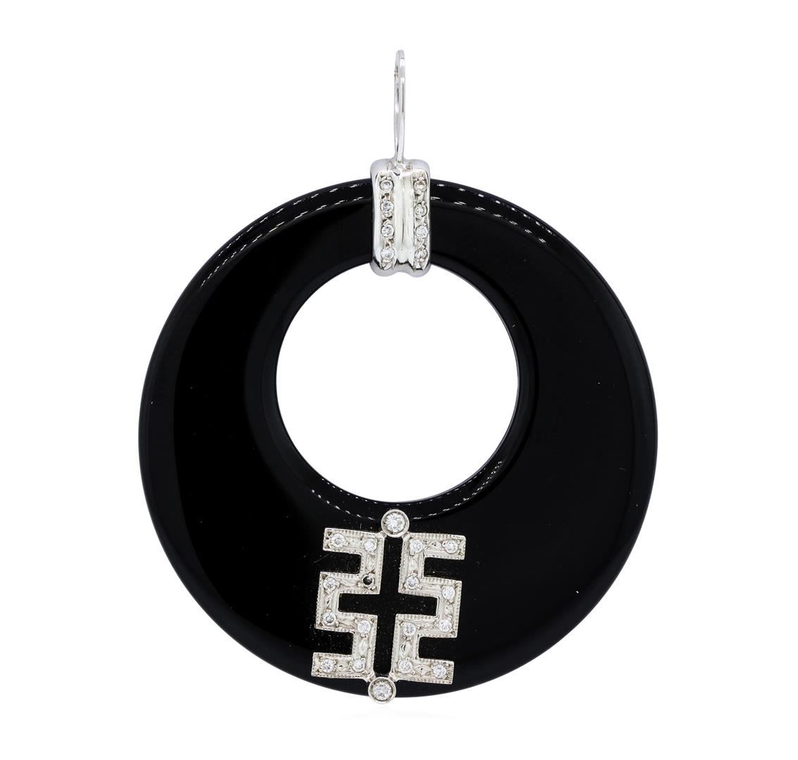 One lady's pendant featuring: 18KT white gold weighing 12.7 grams containing diamonds weighing 0.25ctw and one circular carved piece of onyx.