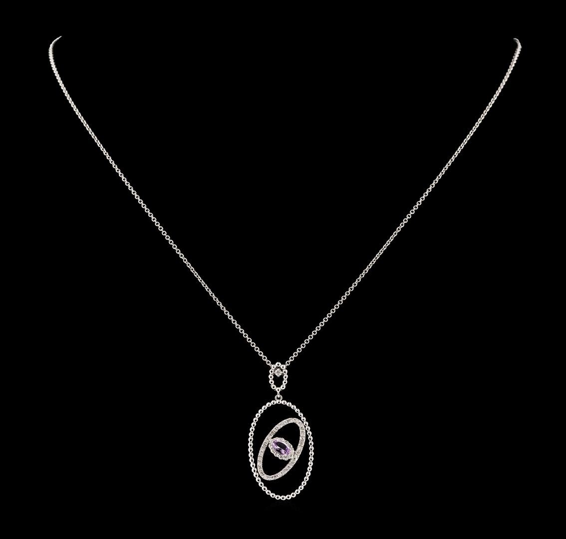 One Green Turquoise and Diamond Pendant With Chain featuring: 14KT White Gold with a total weight of 2.95 grams, Green Turquoise with a total weight of 0.25ct, and 45 Diamonds with a total weight of 0.30ctw.