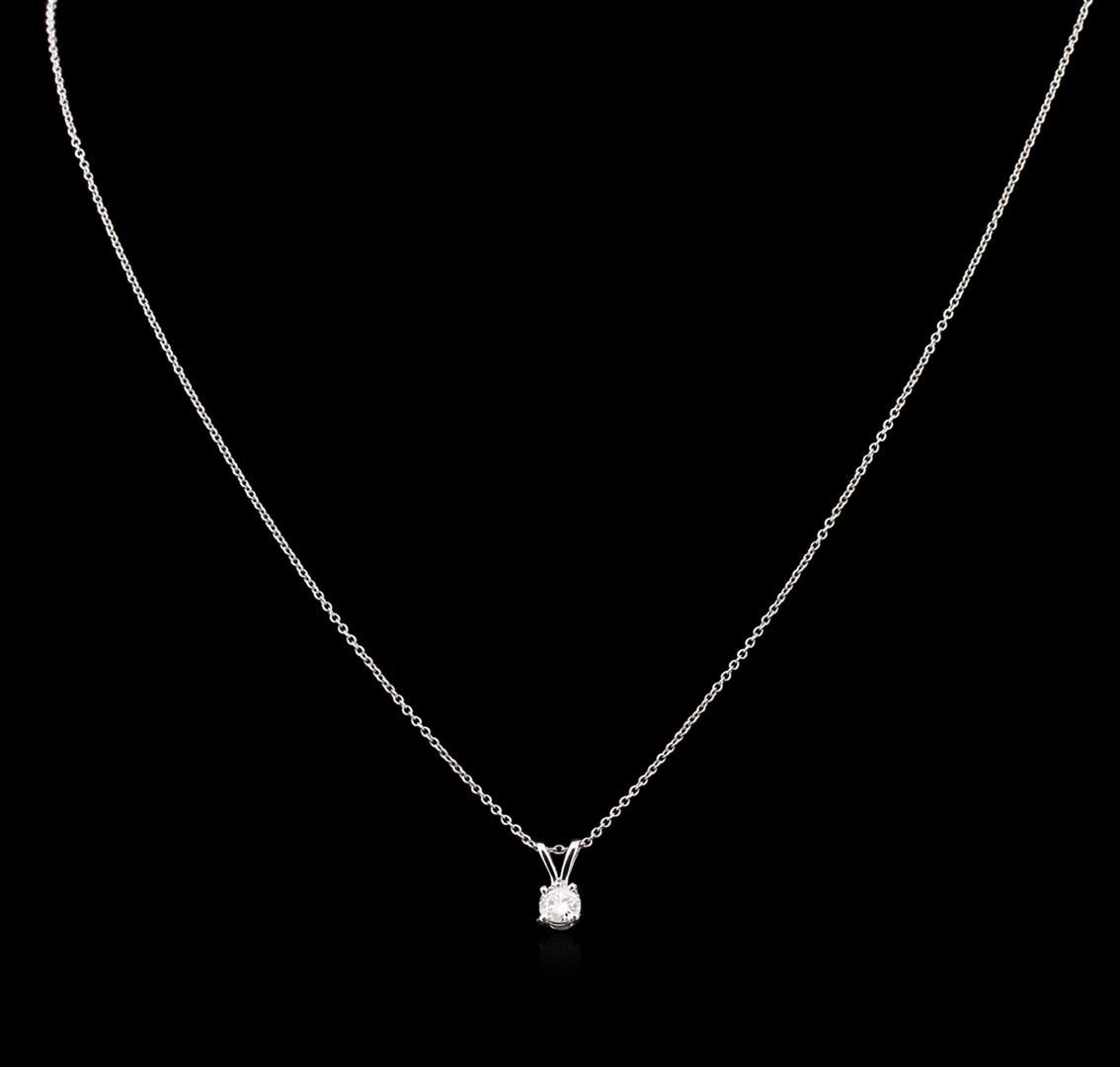 One solitaire pendant with chain featuring: 14KT white gold weighing 1.39 grams containing one diamond with a total weight of 0.25ct.