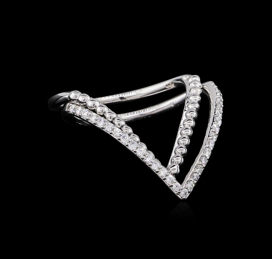 One v-shape twin ring set featuring: 14KT white gold weighing 3.37 grams containing diamonds with a total weight of 0.25ct.