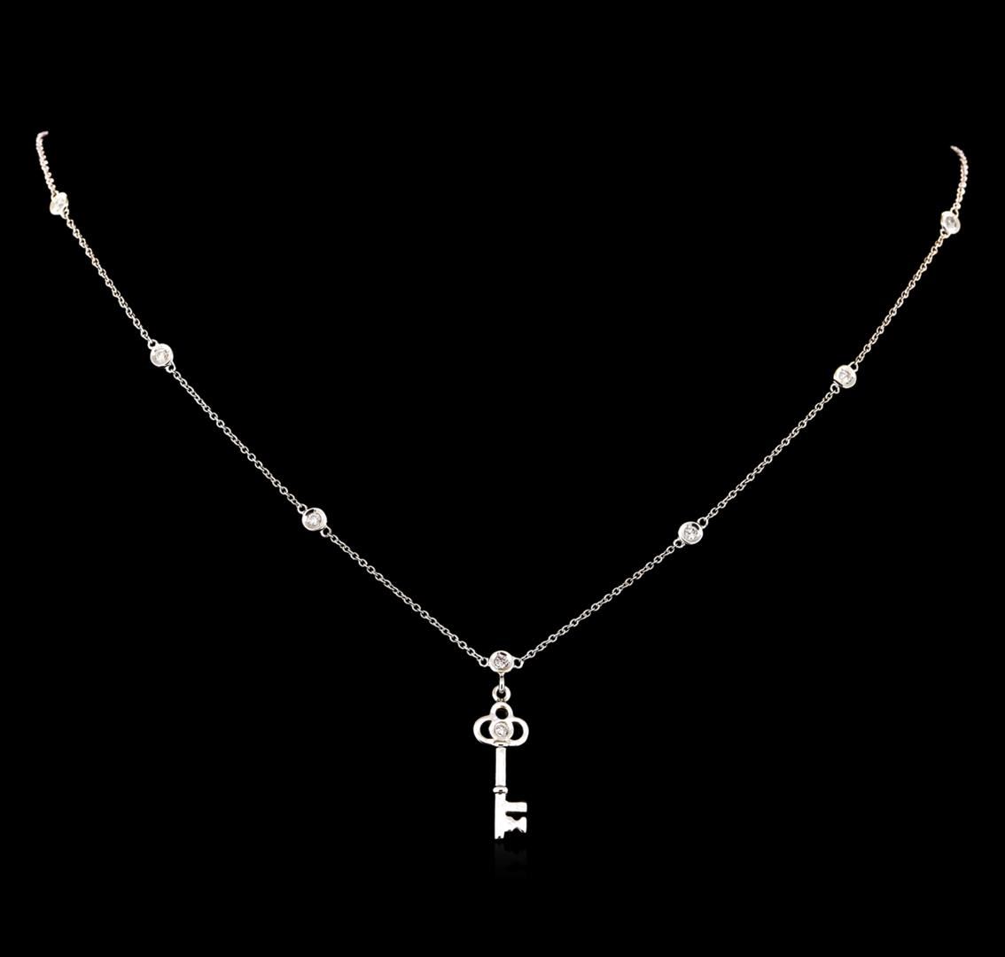 One key pendant with chain featuring: 14KT white gold weighing 3.84 grams containing diamonds with a total weight of 0.28ct.