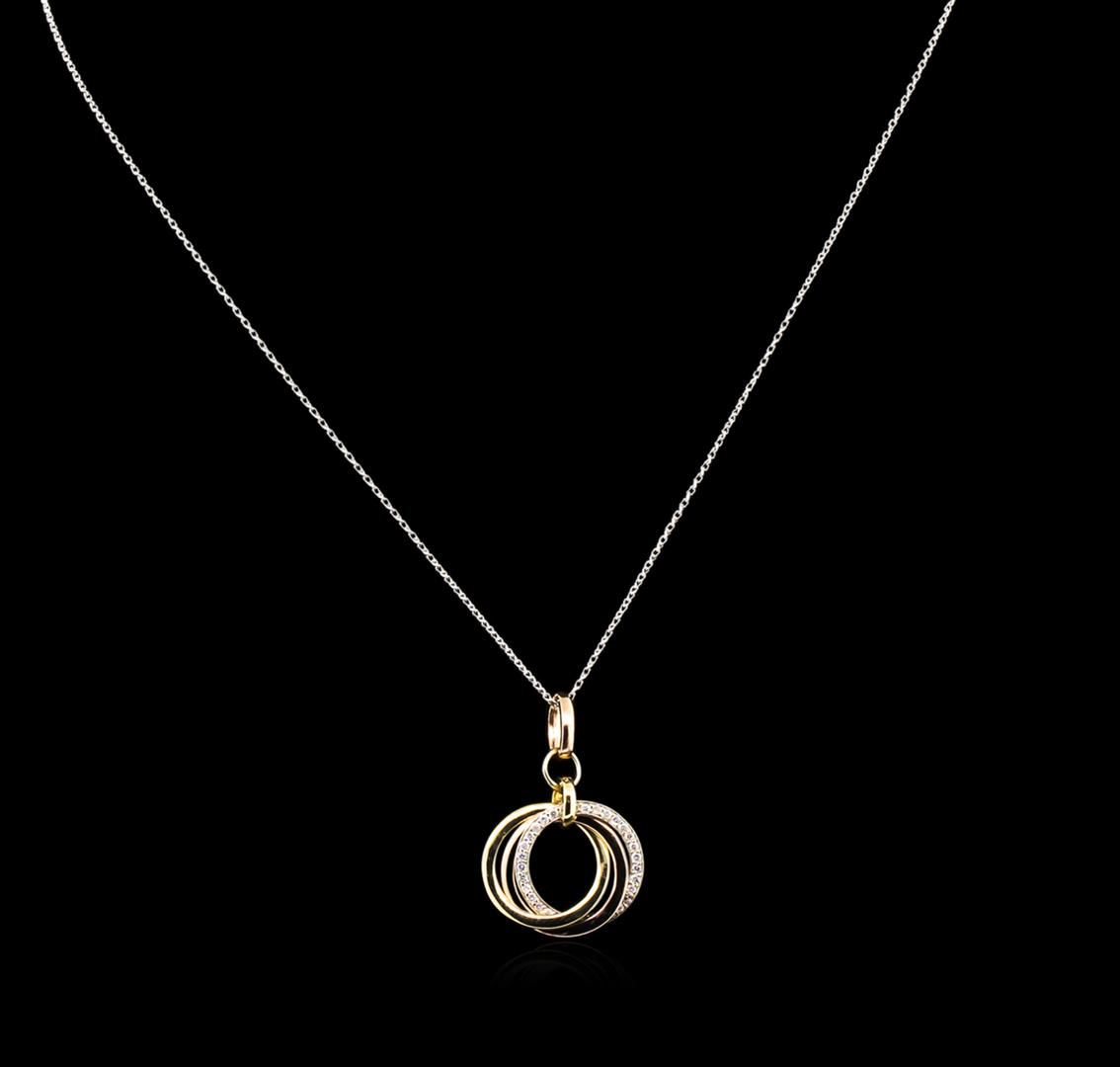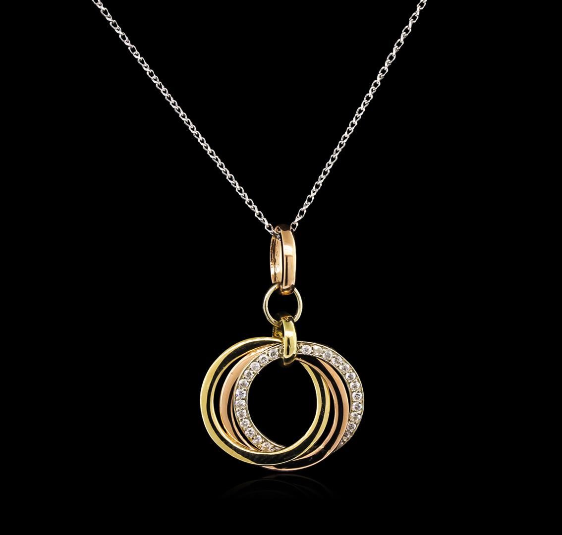 One pendant with chain featuring: 14KT rose gold weighing 3.77 grams containing 33 diamonds with a total weight of 0.28ct.