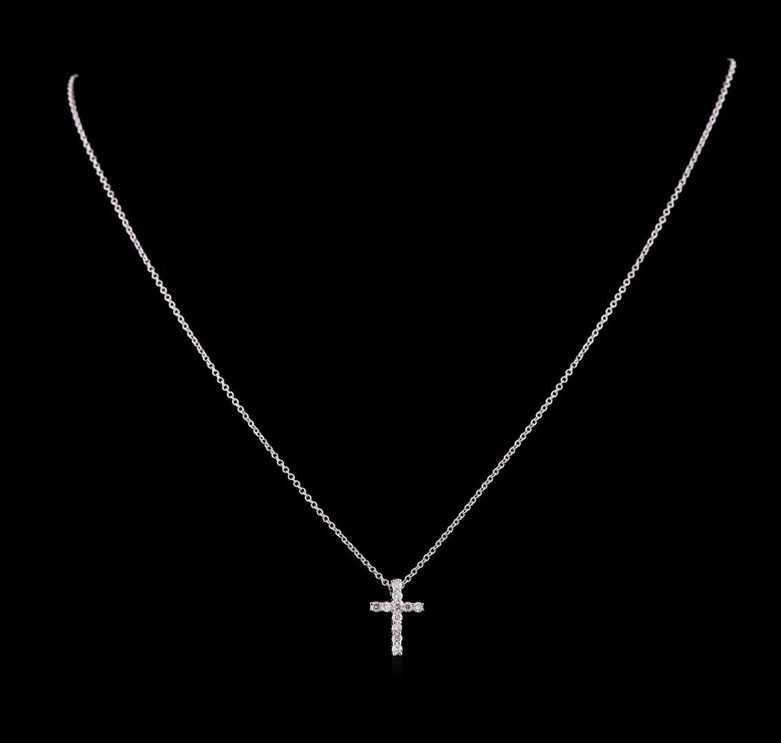 One cross pendant with chain featuring: 14KT white gold weighing 2.40 grams containing diamonds weighing 0.30ctw