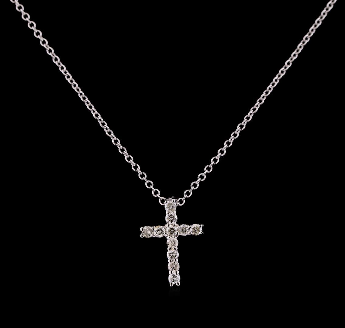 One cross pendant with chain featuring: 14KT white gold weighing 2.40 grams containing diamonds weighing 0.30ctw