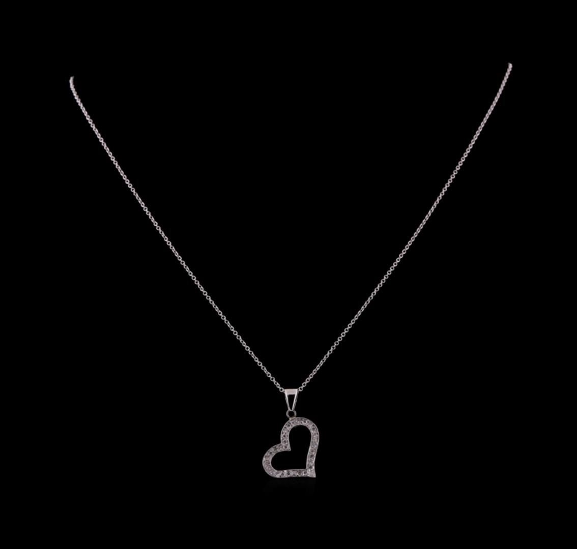 One heart pendant with chain featuring: 14KT white gold weighing 1.65 grams containing diamonds with a total weight of 0.30ct.