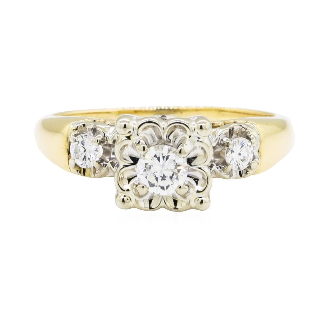 One lady's ring featuring: 14KT yellow and white gold weighing 2.9 grams containing diamonds weighing 0.30ctw.