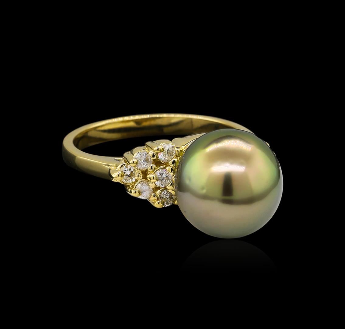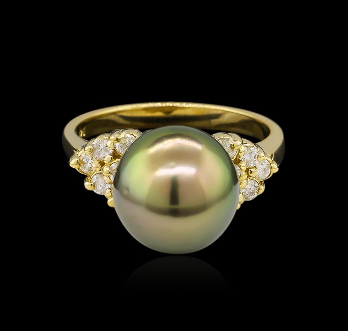 One ring featuring: 14KT yellow gold weighing 4.48 grams containing one pearl and diamonds ring a total weight of 0.30ct.