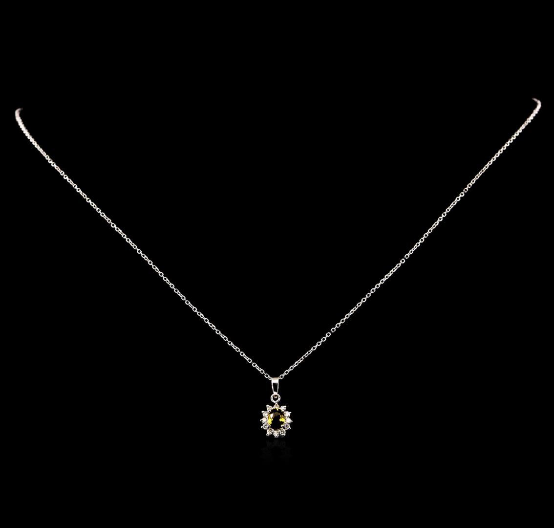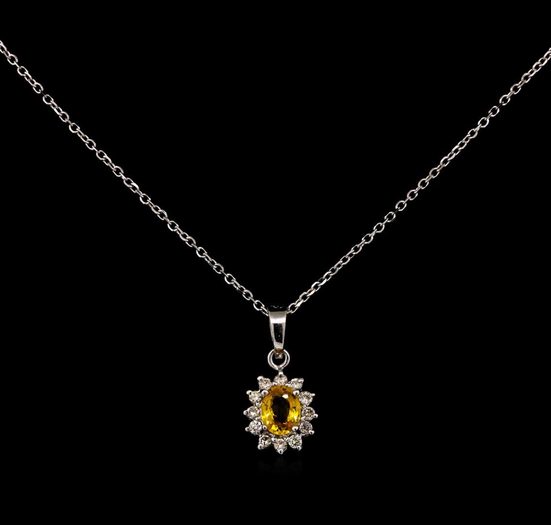 One pendant with chain featuring: 14KT white gold weighing 0.70 grams containing one yellow sapphire with a total weight of 0.30ct and side diamonds with a total weight of 0.10ct.