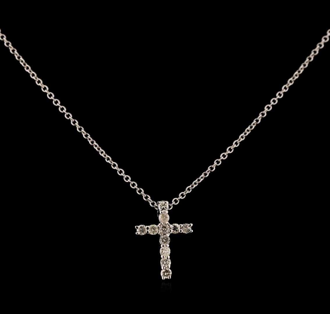 One cross pendant with chain featuring: 14KT white gold weighing 2.47 grams containing diamonds weighing 0.31ctw.