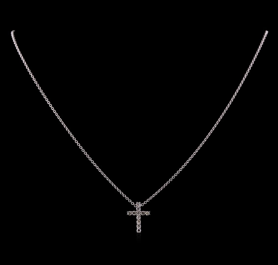 One cross pendant with chain featuring: 14KT white gold weighing 2.50 grams containing diamonds weighing 0.31ctw.