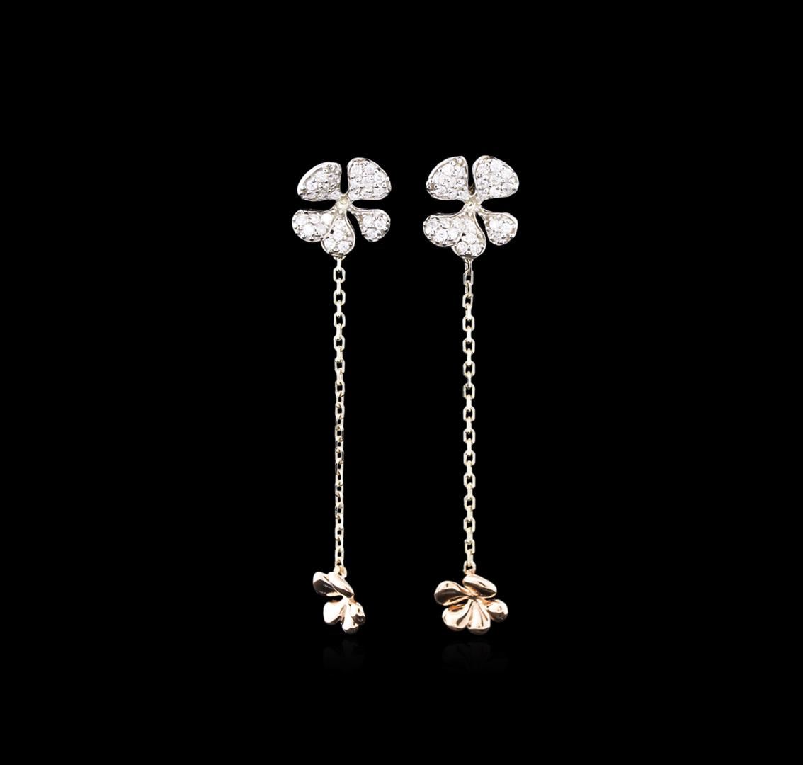 One pair of earrings featuring: 14KT yellow and white gold weighing 3.35 grams containing diamonds with a total weight of 0.32ct.