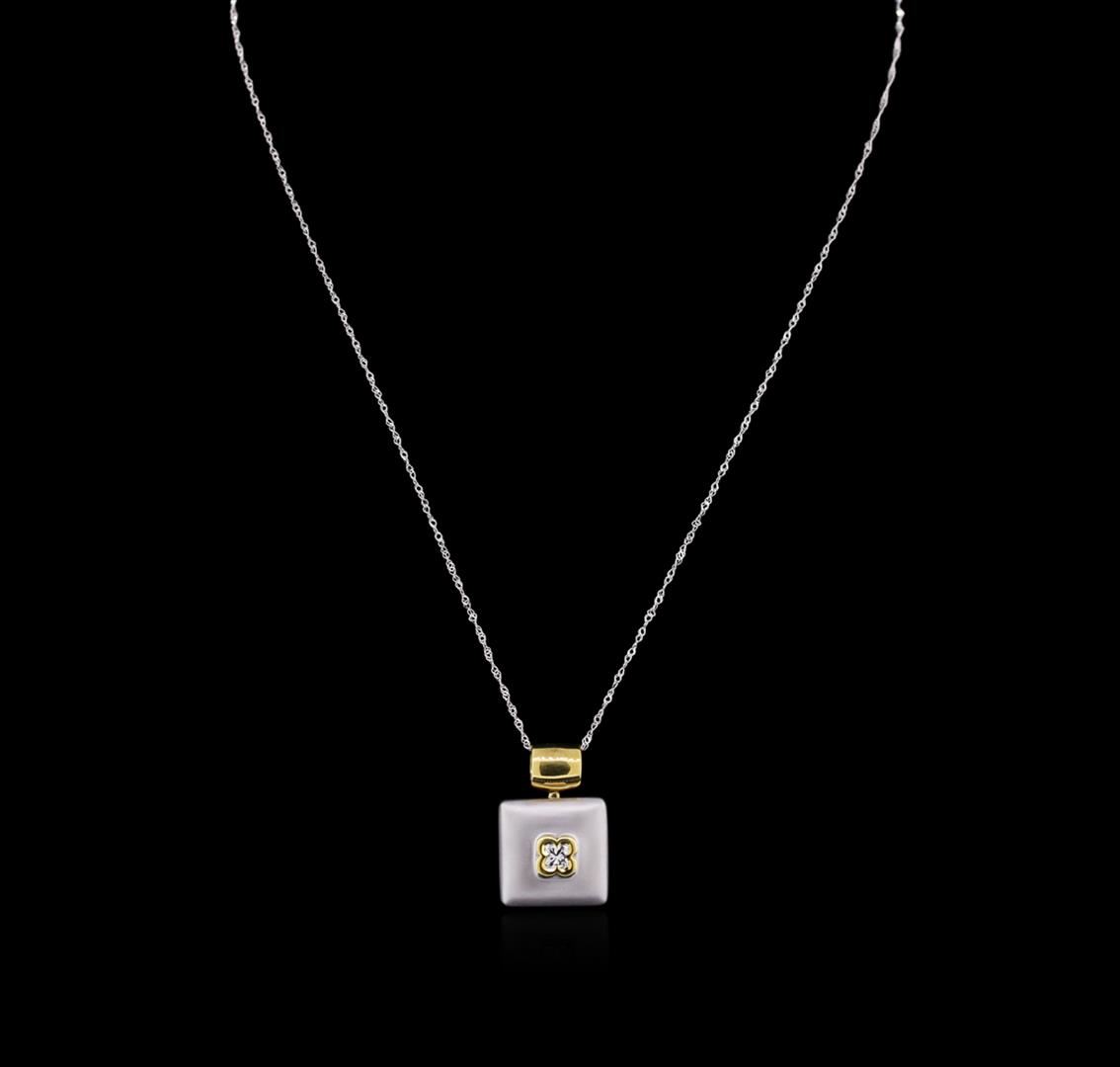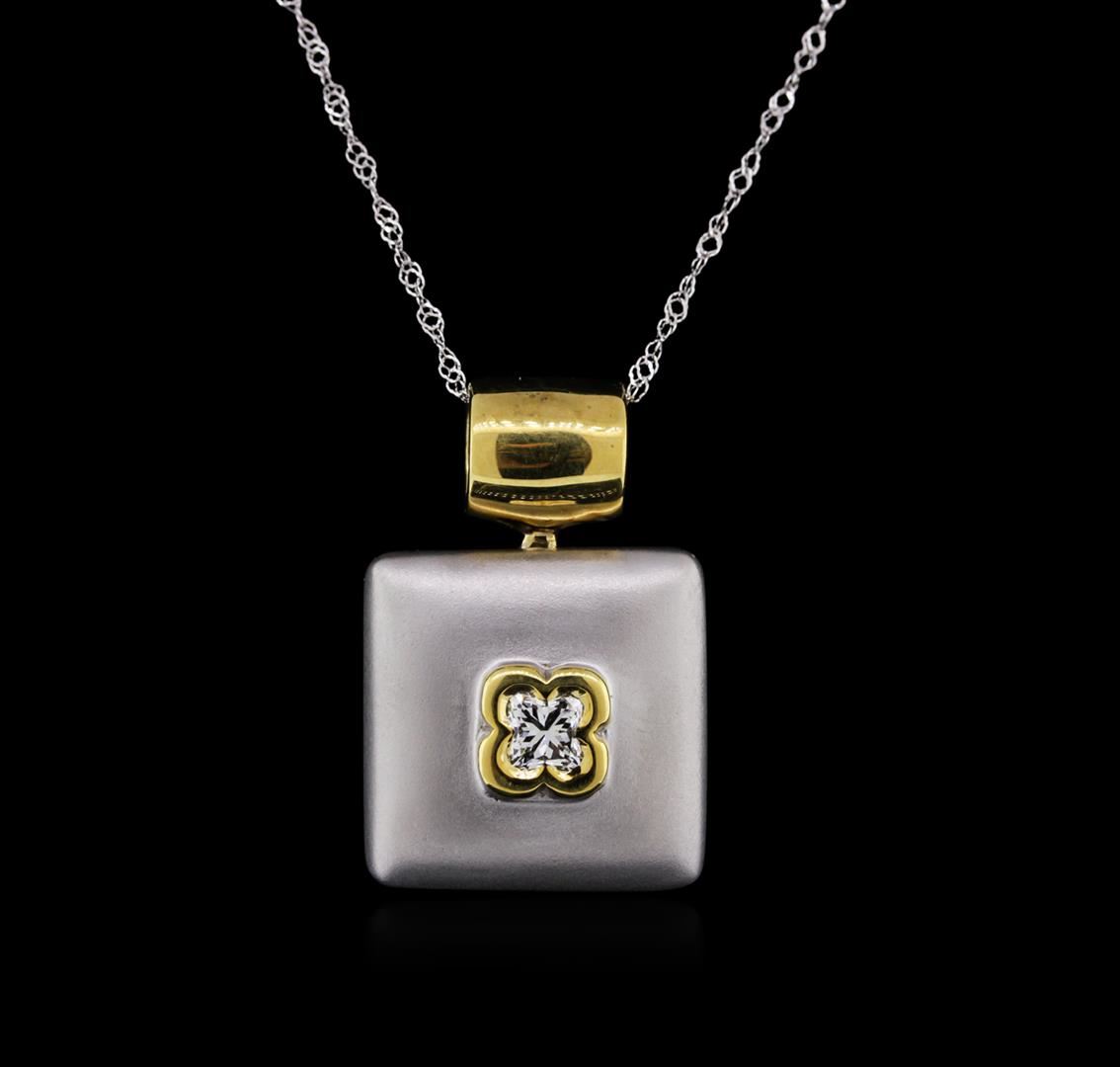 One pendant with chain featuring: 18KT white and yellow gold weighing 5.80 grams containing one diamond with a total weight of 0.32ct.