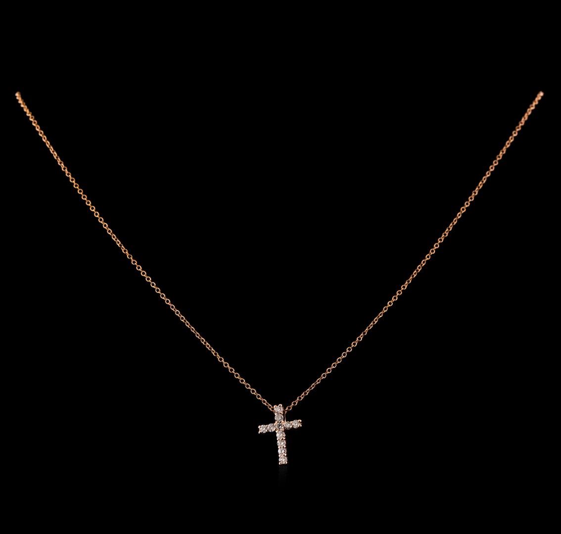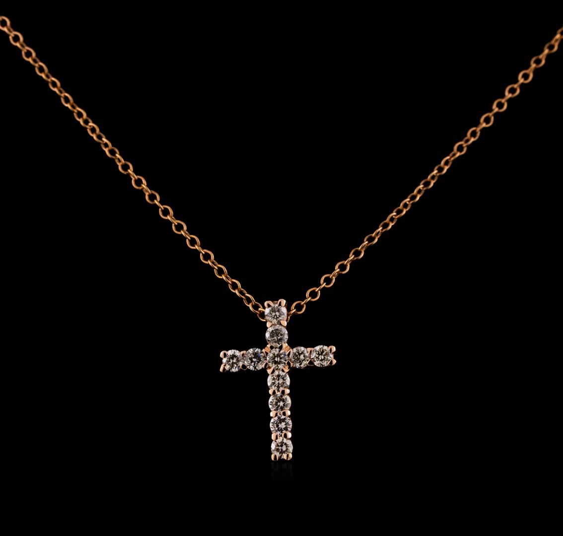 One cross pendant with chain featuring: 14KT rose gold weighing 1.83 grams containing diamonds weighing 0.34ctw.