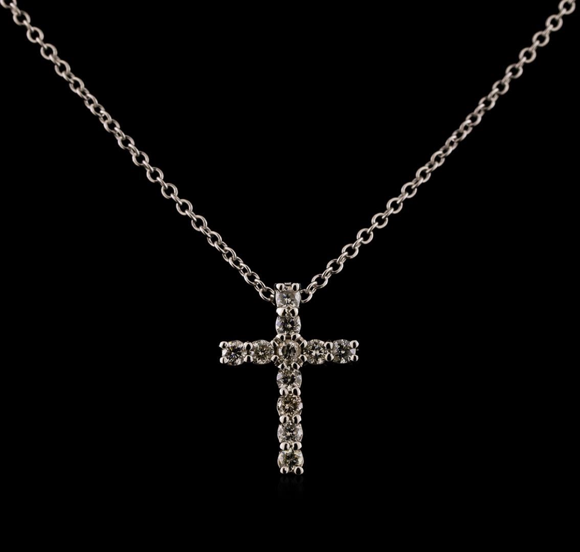 One cross pendant with chain featuring: 14KT white gold weighing 2.70 grams containing diamonds weighing 0.34ctw.