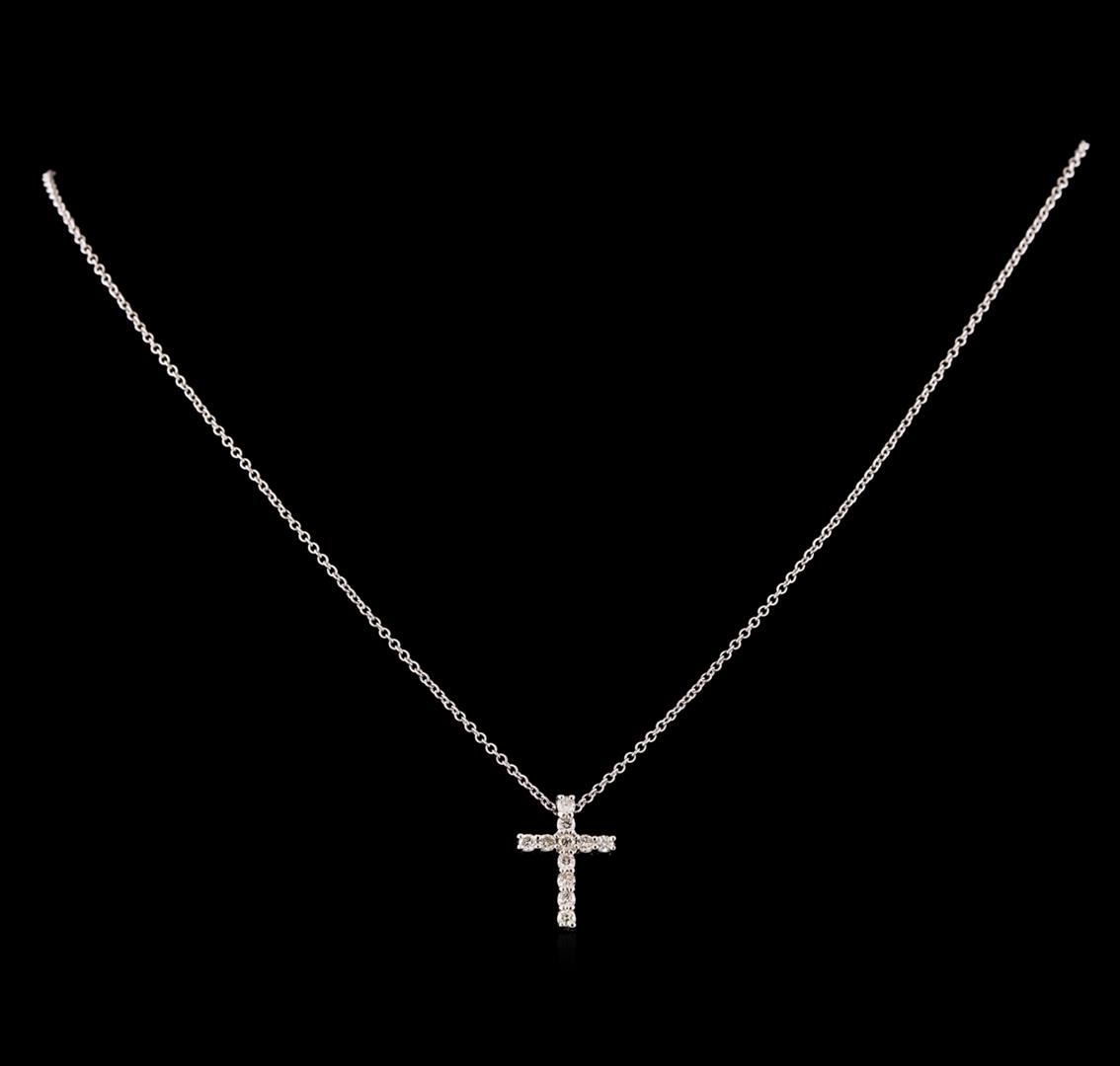 One cross pendant with chain featuring: 14KT white gold weighing 2.70 grams containing diamonds weighing 0.34ctw.